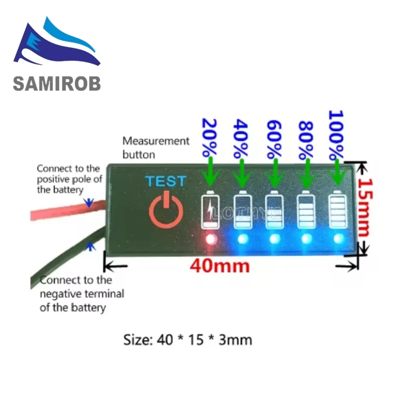 1.Conecte los terminales positivo y negativo del tablero de visualización a los terminales positivo y negativo de la batería probada, presione suavemente el botón rojo con el dedo y la luz IED se iluminará para mostrar el nivel de batería en tiempo real.