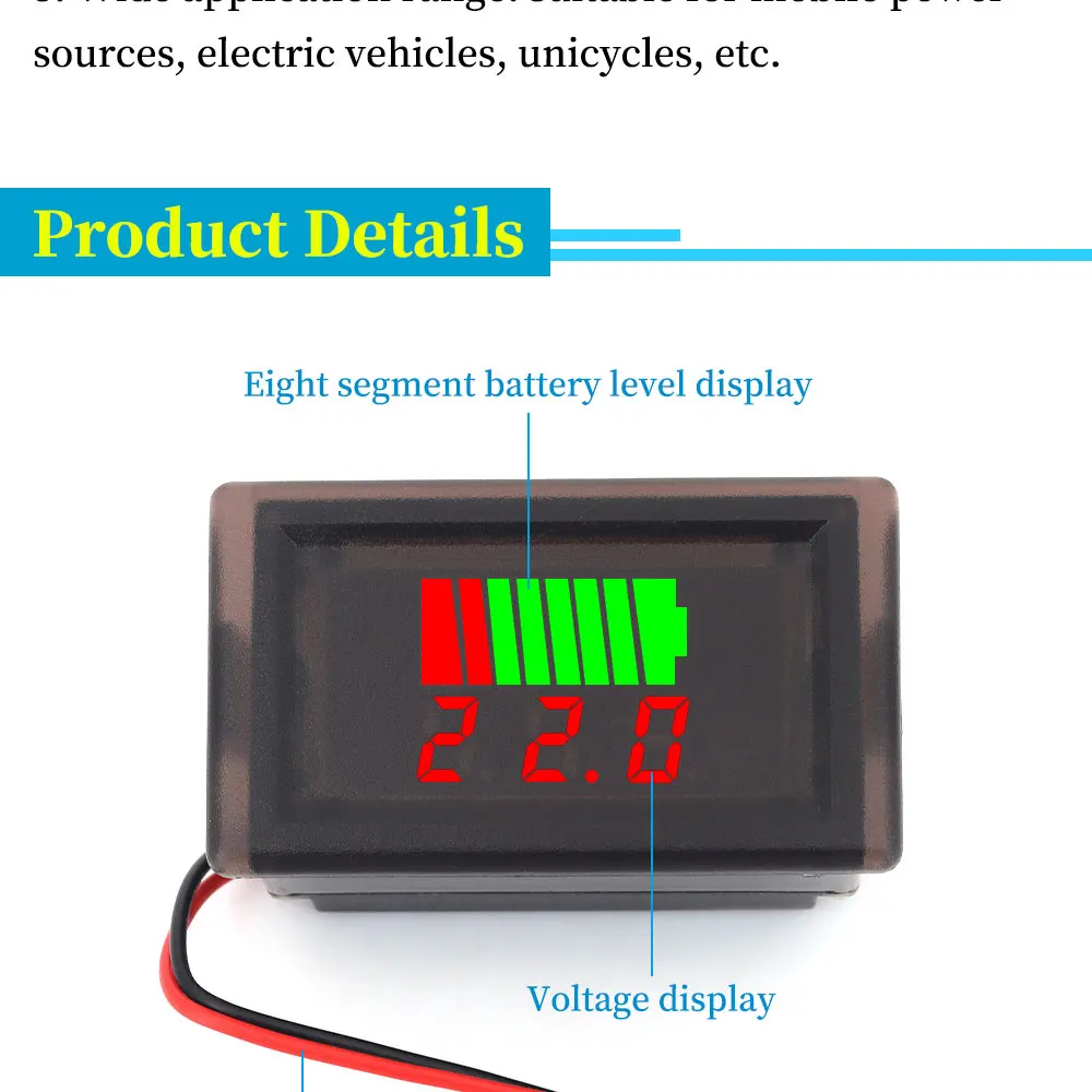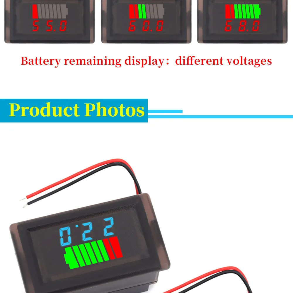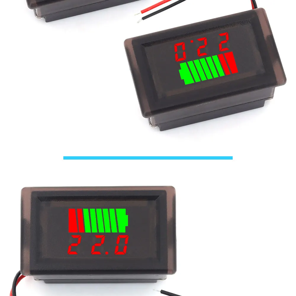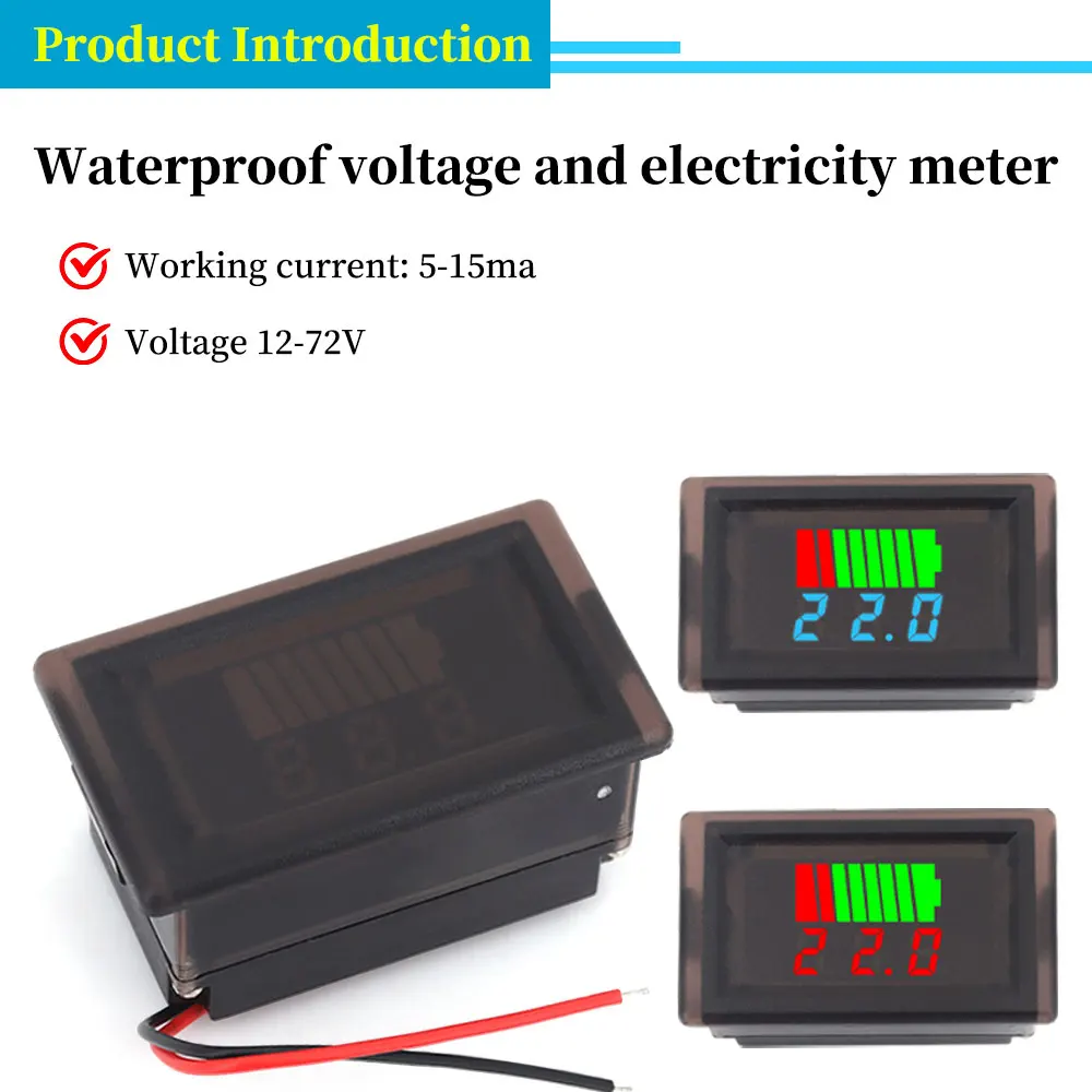 Indicador de nivel de carga de batería de coche a prueba de agua, medidor de capacidad de batería de litio de 12V-72V, voltímetro probador de pantalla azul