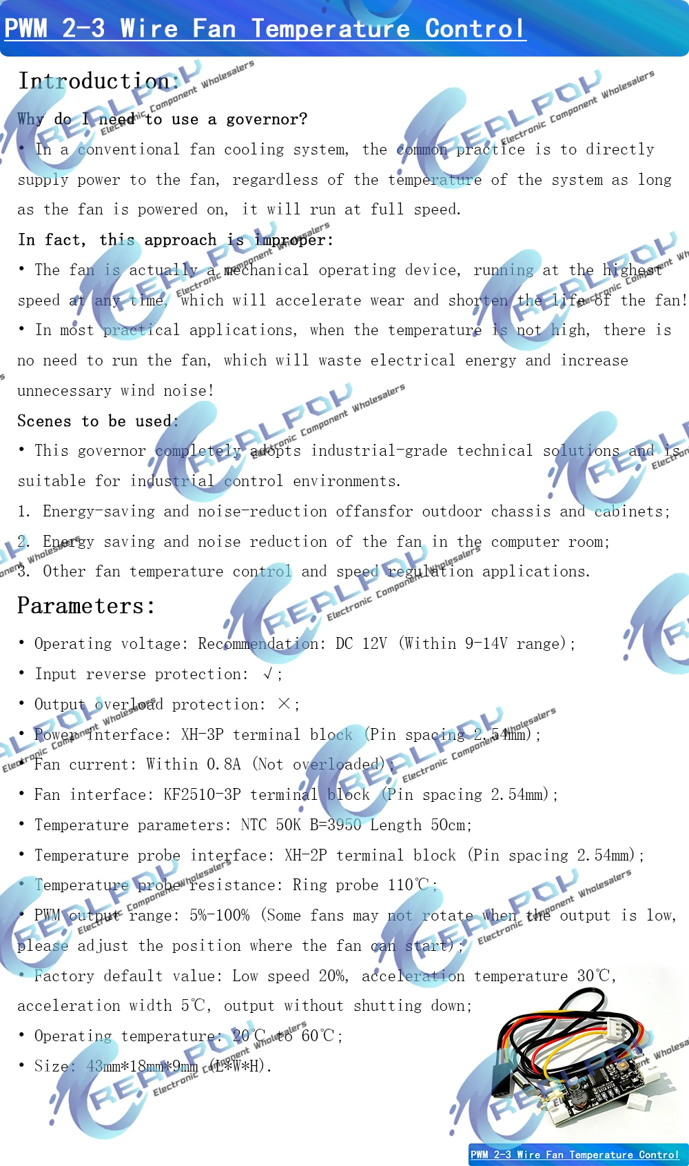 Individual 12V 0.8A DC PWM 2-3 cables ventilador Control de temperatura controlador de velocidad chasis ordenador módulo de reducción de ruido NTC B 50K 3950