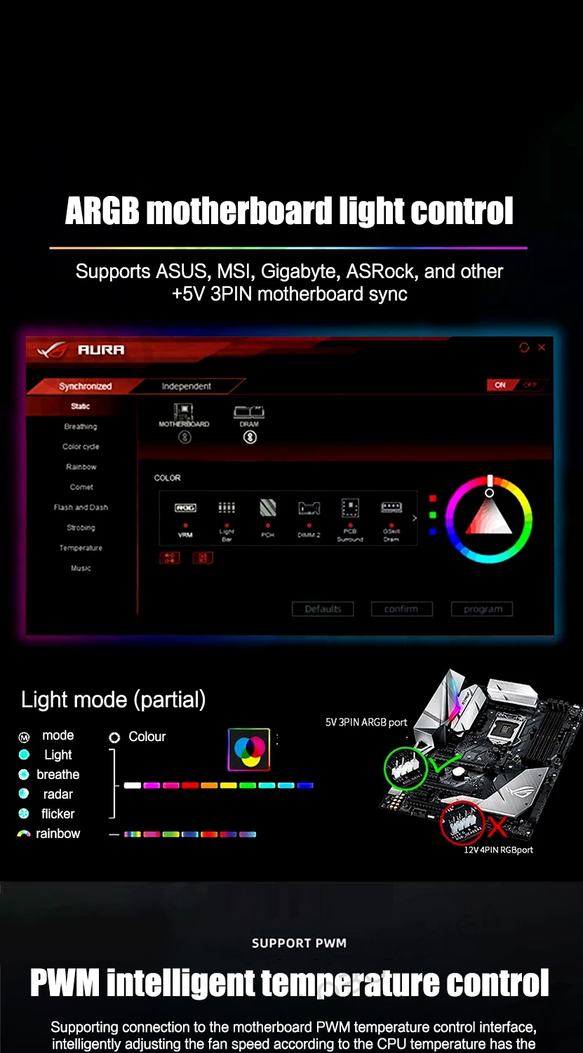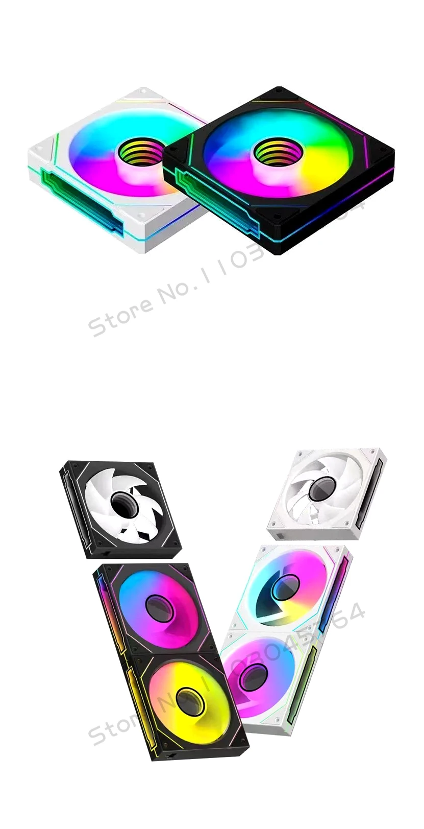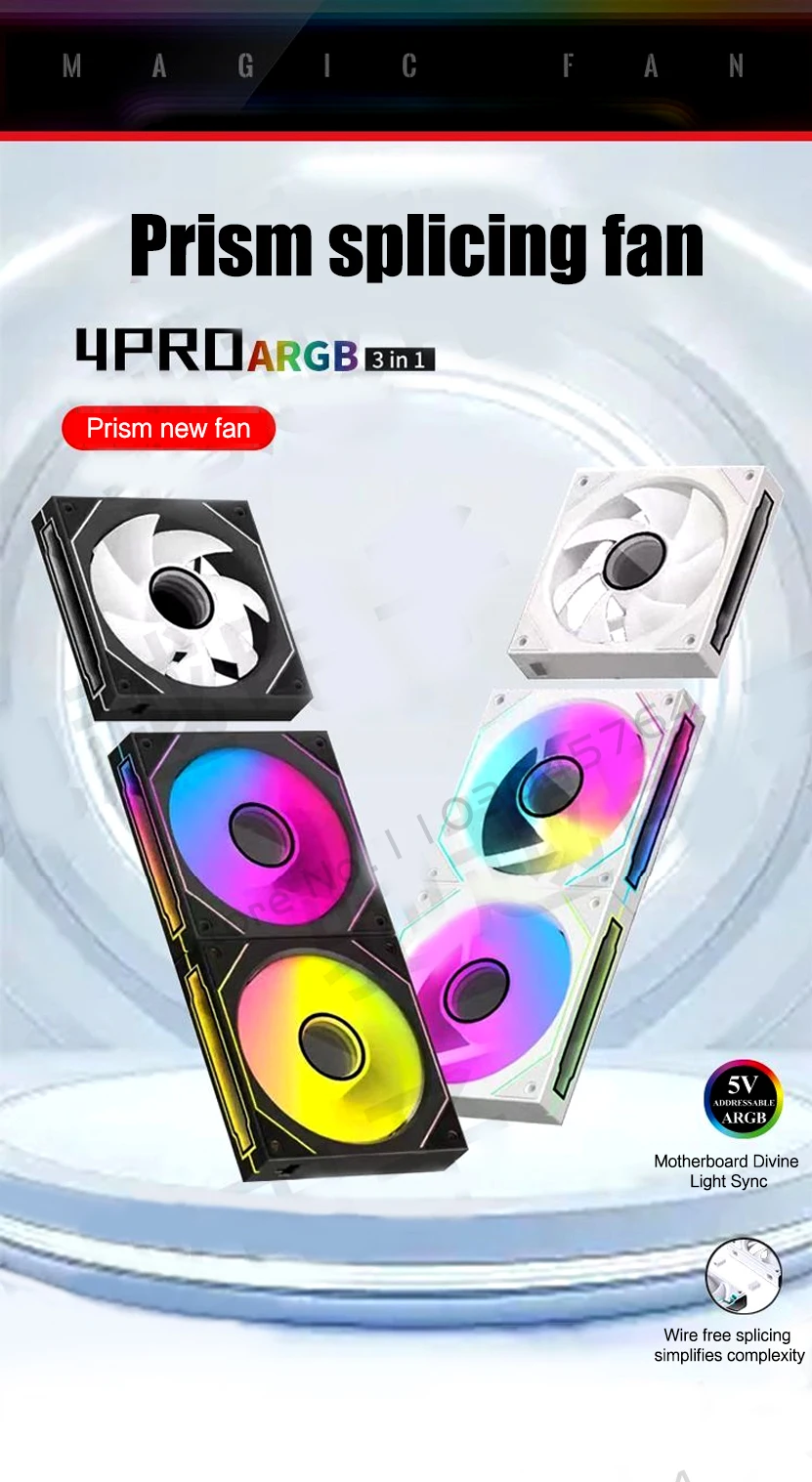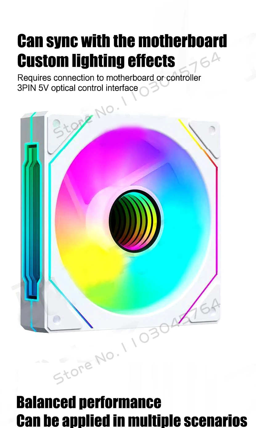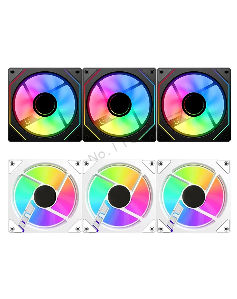 Infinite Mirror Uni Fan Cabless, paquete triple ARGB de 5 V para gabinete de caja de panel lateral transparente, aspas delanteras/traseras en negro/blanco