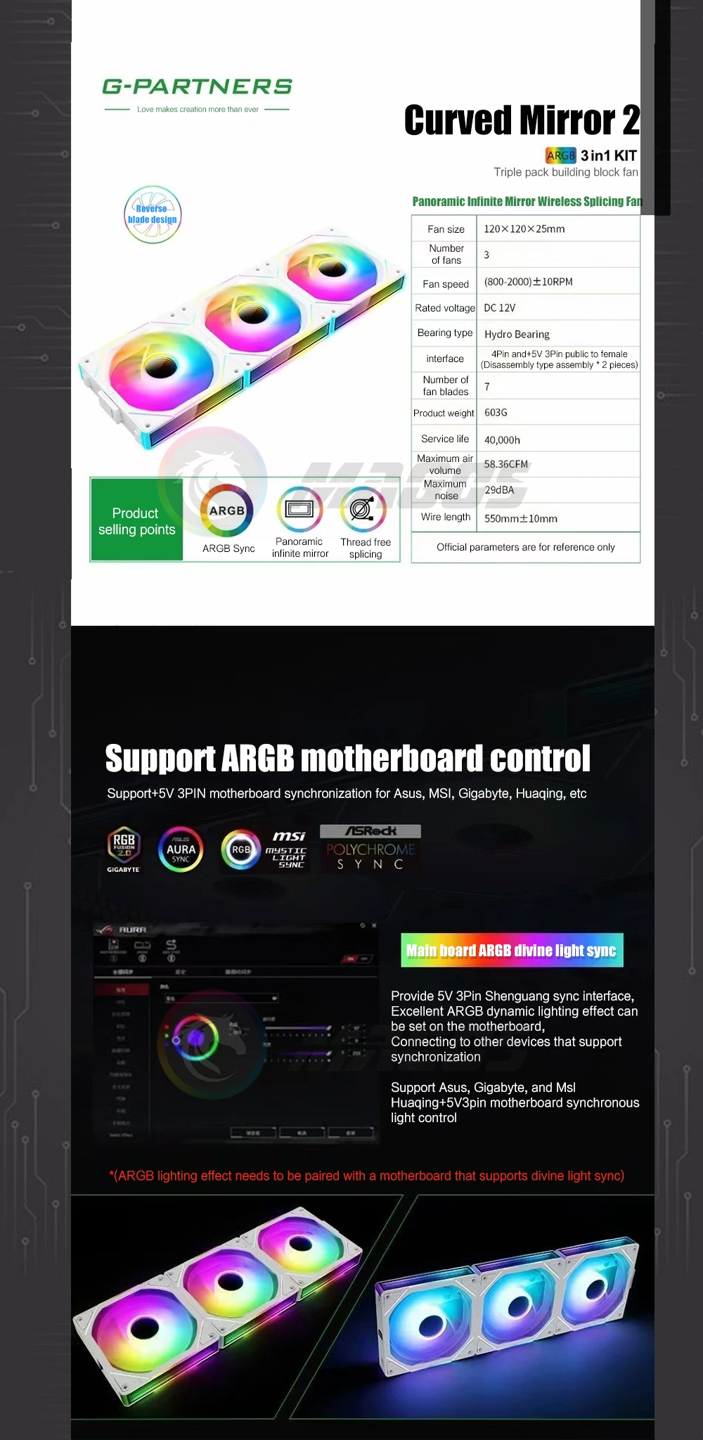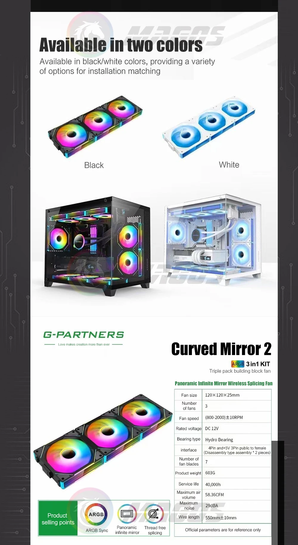 Comprar Infinity Mirror Uni Fan 3 en 1, efecto de luz ARGB, hoja inversa Forword, gabinete de jugador de PC, refrigeración por agua, radiador silencioso silencioso