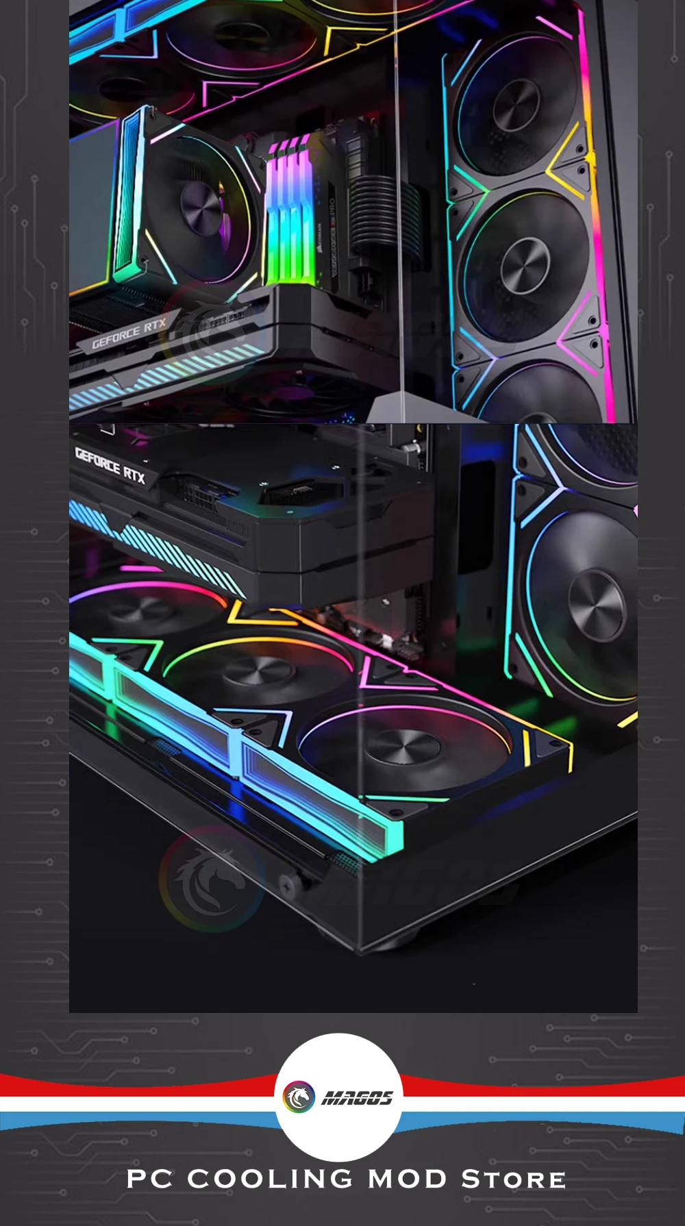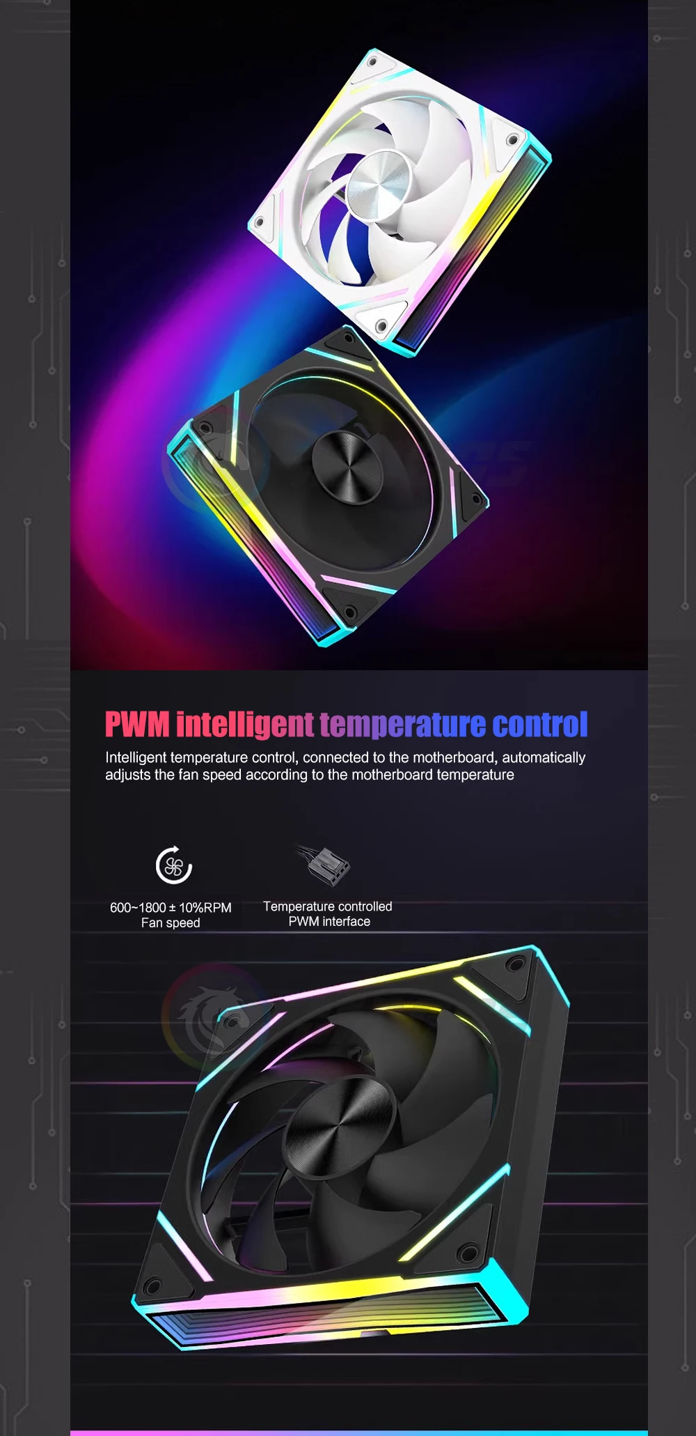 Infinity Mirror-ventilador de carcasa RGB de 120mm, LJ7 Pro, 12cm, 5V, ARGB, Ultra silencioso, 23dBA, 600-1800, PWM, refrigeración para armario de PC