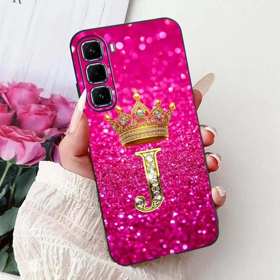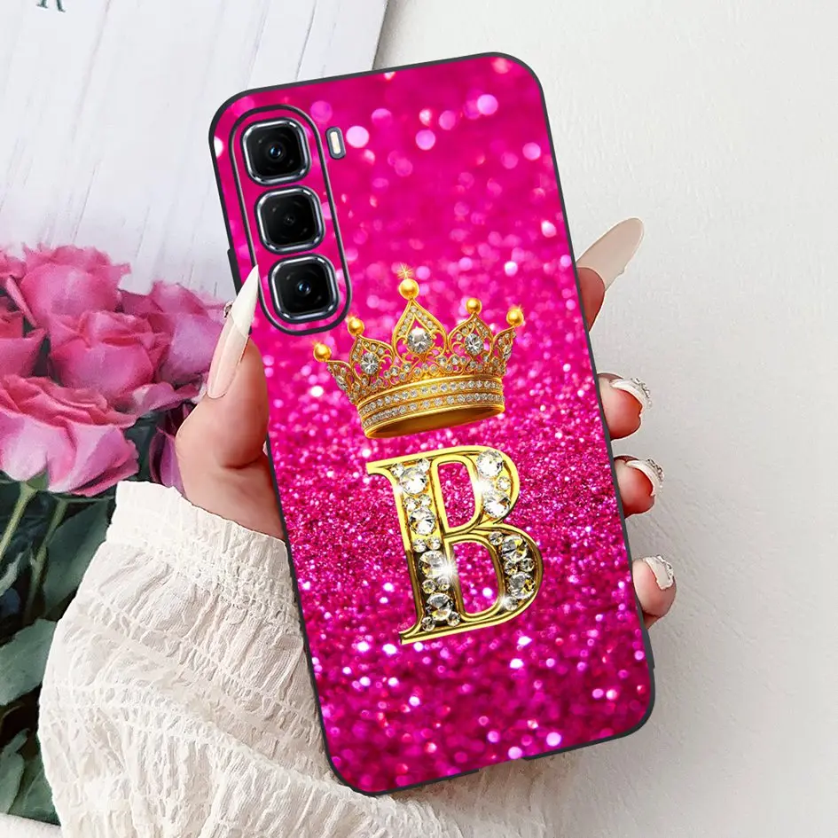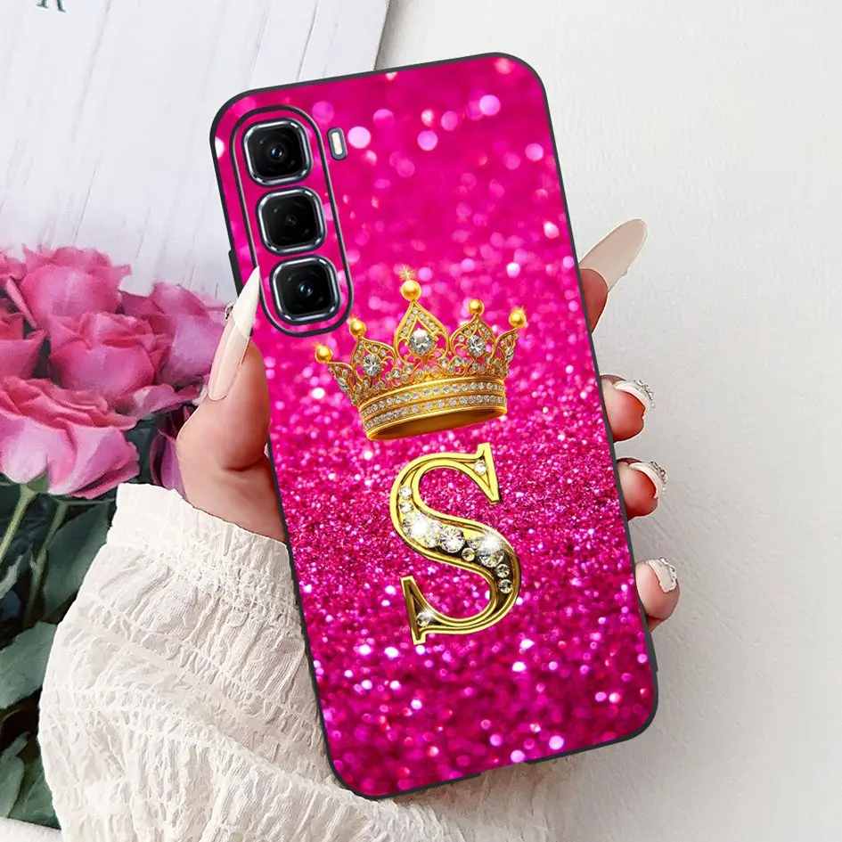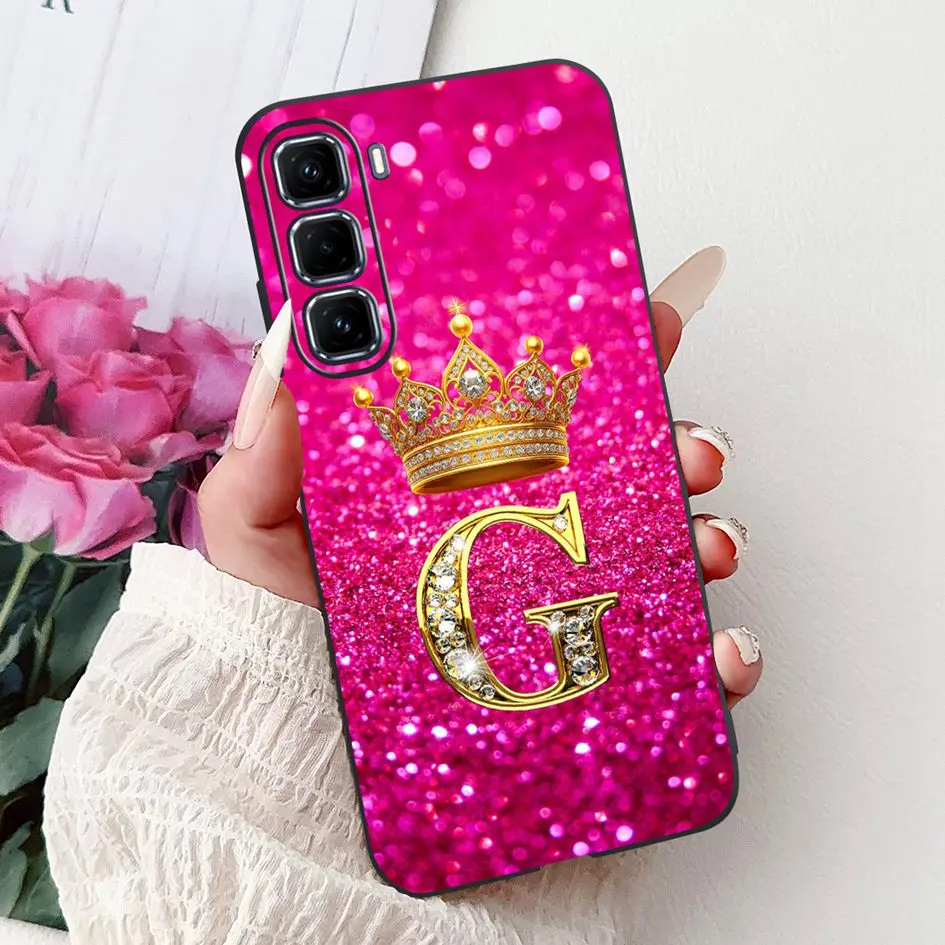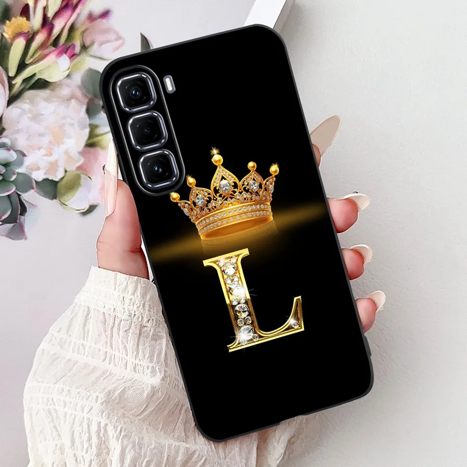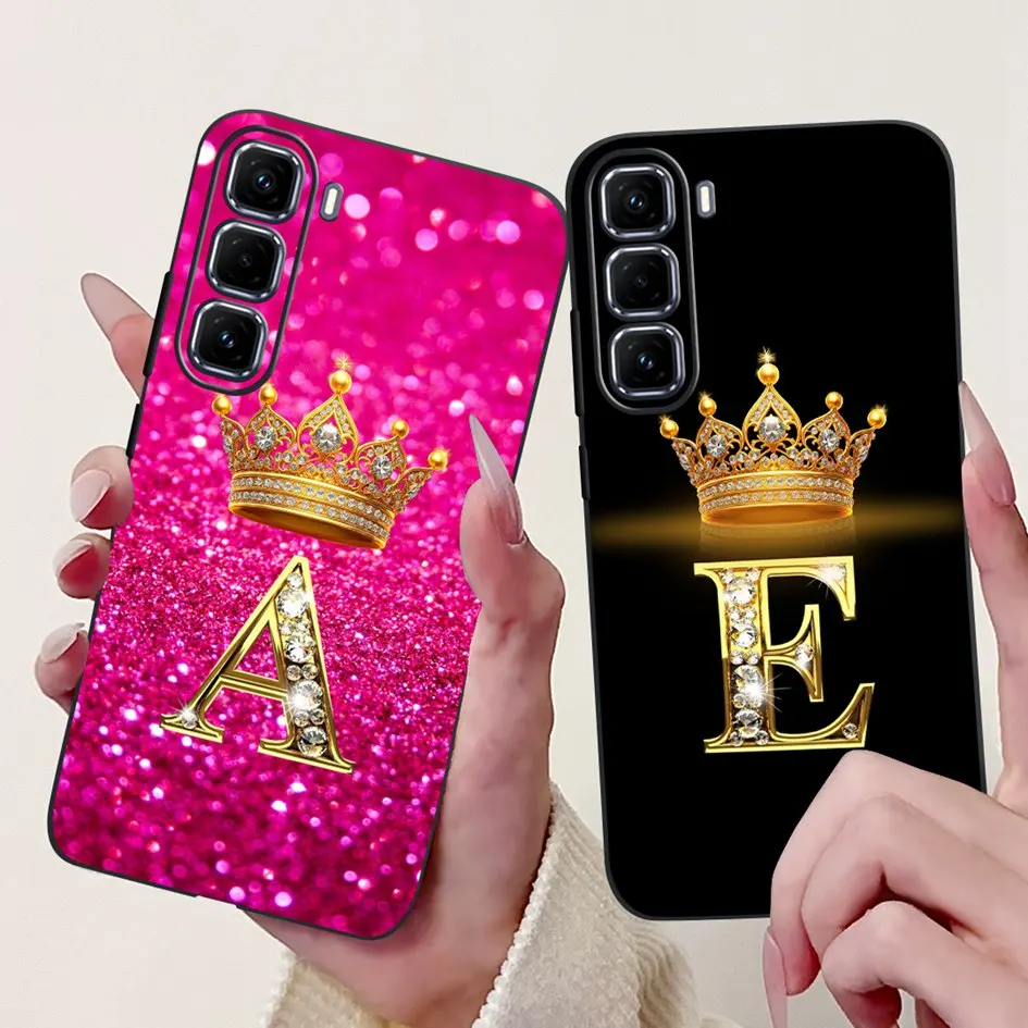 Para Infinix Hot 50 Pro 4G X6881 funda de lujo con letras de corona funda de teléfono de silicona negra suave para Infinix Hot 50 Pro + 4G Hot50 Coque