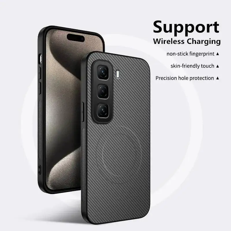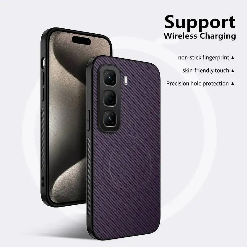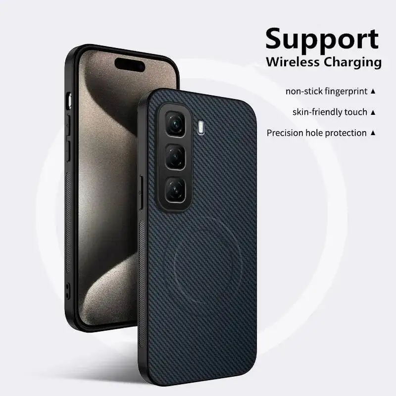Para Infinix Hot 60 60i funda de lujo a rayas de Kevlar funda trasera magnética Magsafe para Infinix Hot60 60i funda de carga inalámbrica