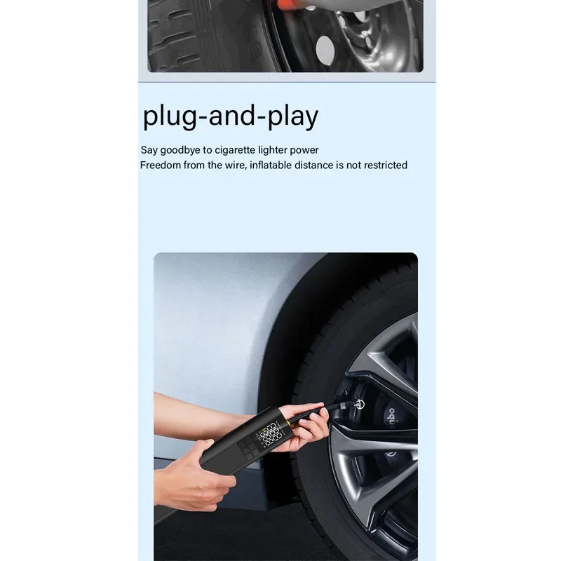 Inflador de coche inteligente portátil Sensor de presión de aire de alta precisión Detección de presión de aire de neumáticos en tiempo Real Reemplazo de aire seguroDescripción: