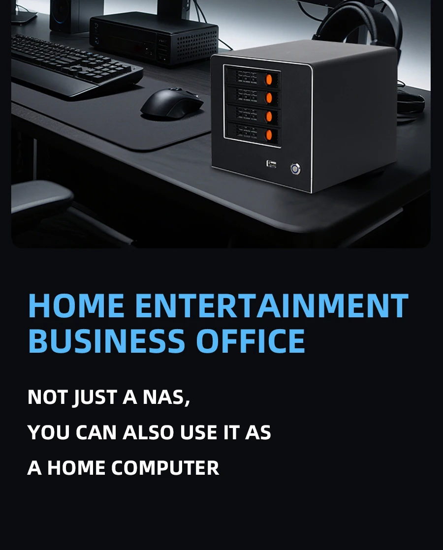 El modelo N2940 tiene HDD de 4 compartimentos de 2,5 o 3,5 pulgadas, utiliza SODIMM DDR3L de 1,35 V de RAM y SSD mSATA de uso interno