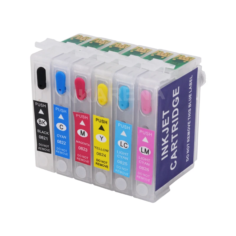 INKARENA 6 × 100mL botella de tinta de tinte + T0821 cartucho de tinta de impresora recargable para Epson Stylus