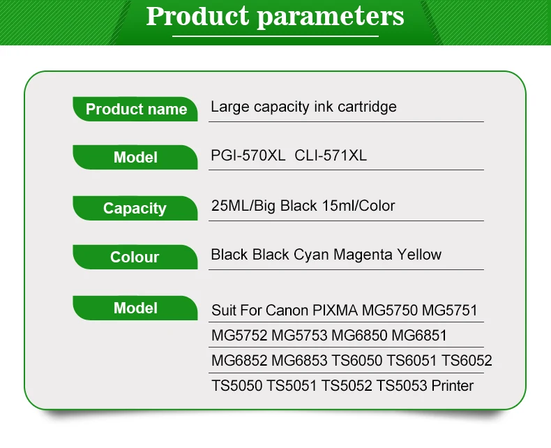 INKARENA para Canon MG5750 MG5751 MG5752 MG5753 MG 5750 5751 5752 5753 Cartucho de tinta impresora PIxma 5C cartucho de tinta PGI570