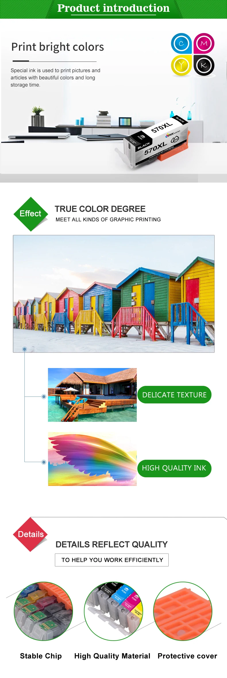 Cartucho de tinta negra de 5 piezas para Canon CLI571, tinta completa con chip