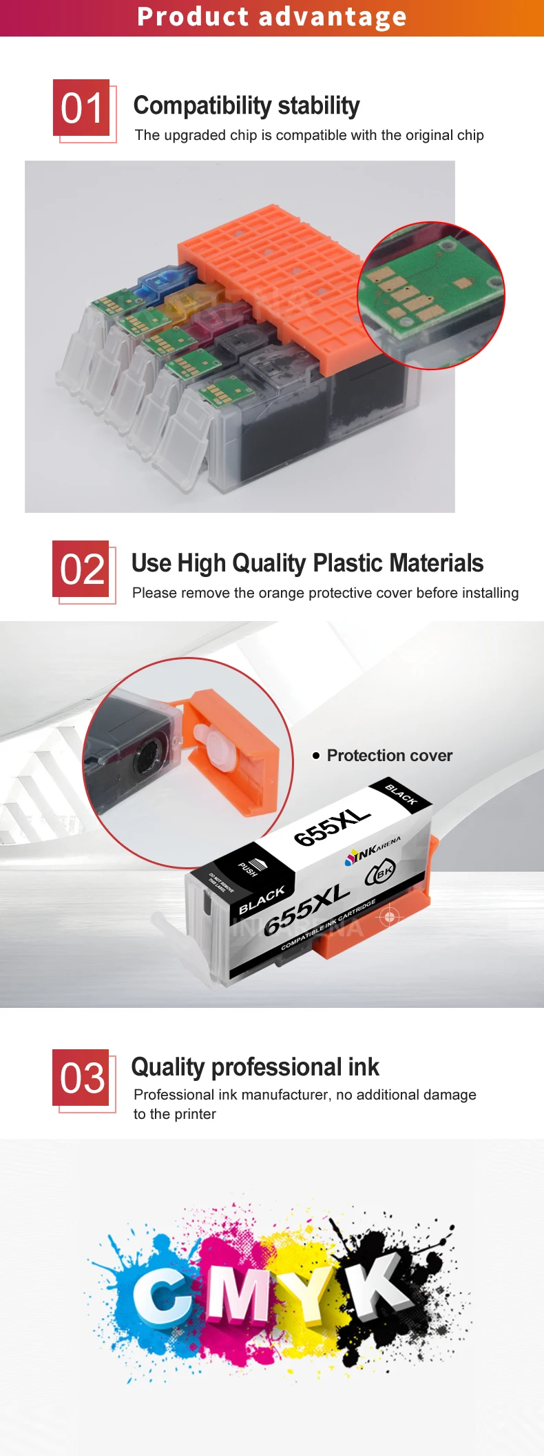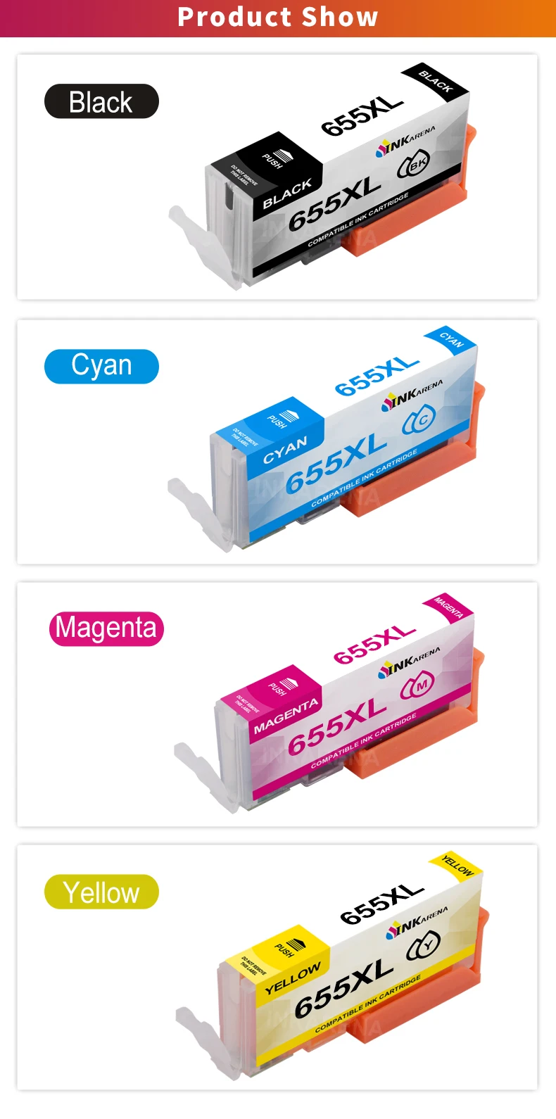 Reemplazo de cartuchos de tinta INKARENA 655XL para Cartucho HP655 para HP 655 Deskjet 4615 4625 3525