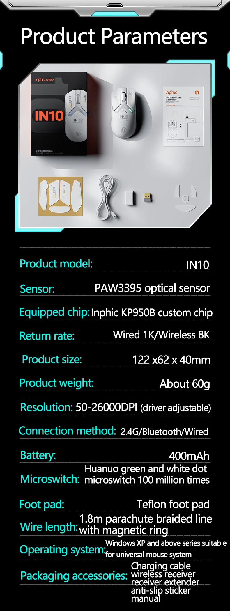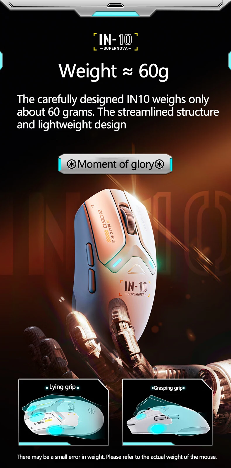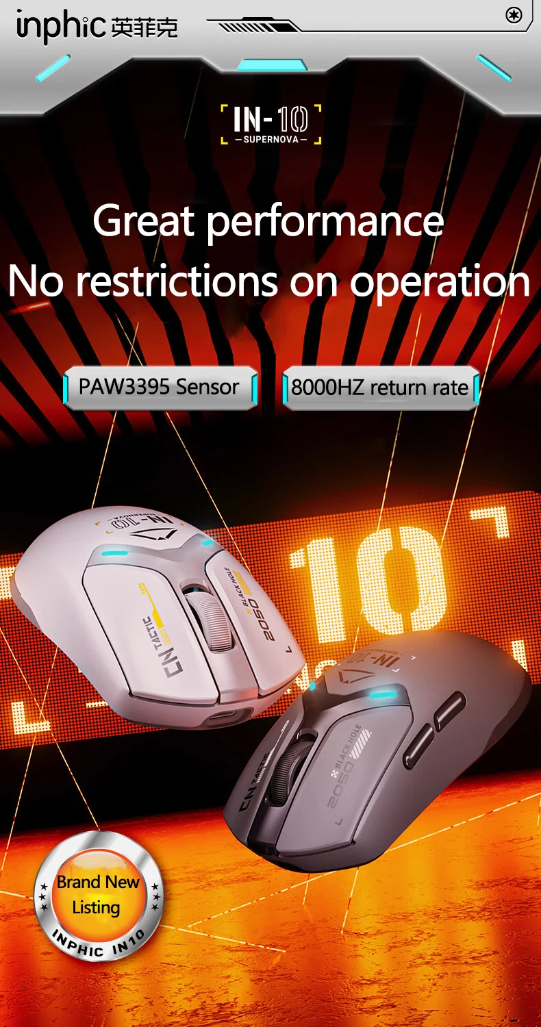 El diseño liviano y ergonómico del mouse INPHIC IN10 PAW3395 brinda comodidad para sesiones de juego prolongadas.