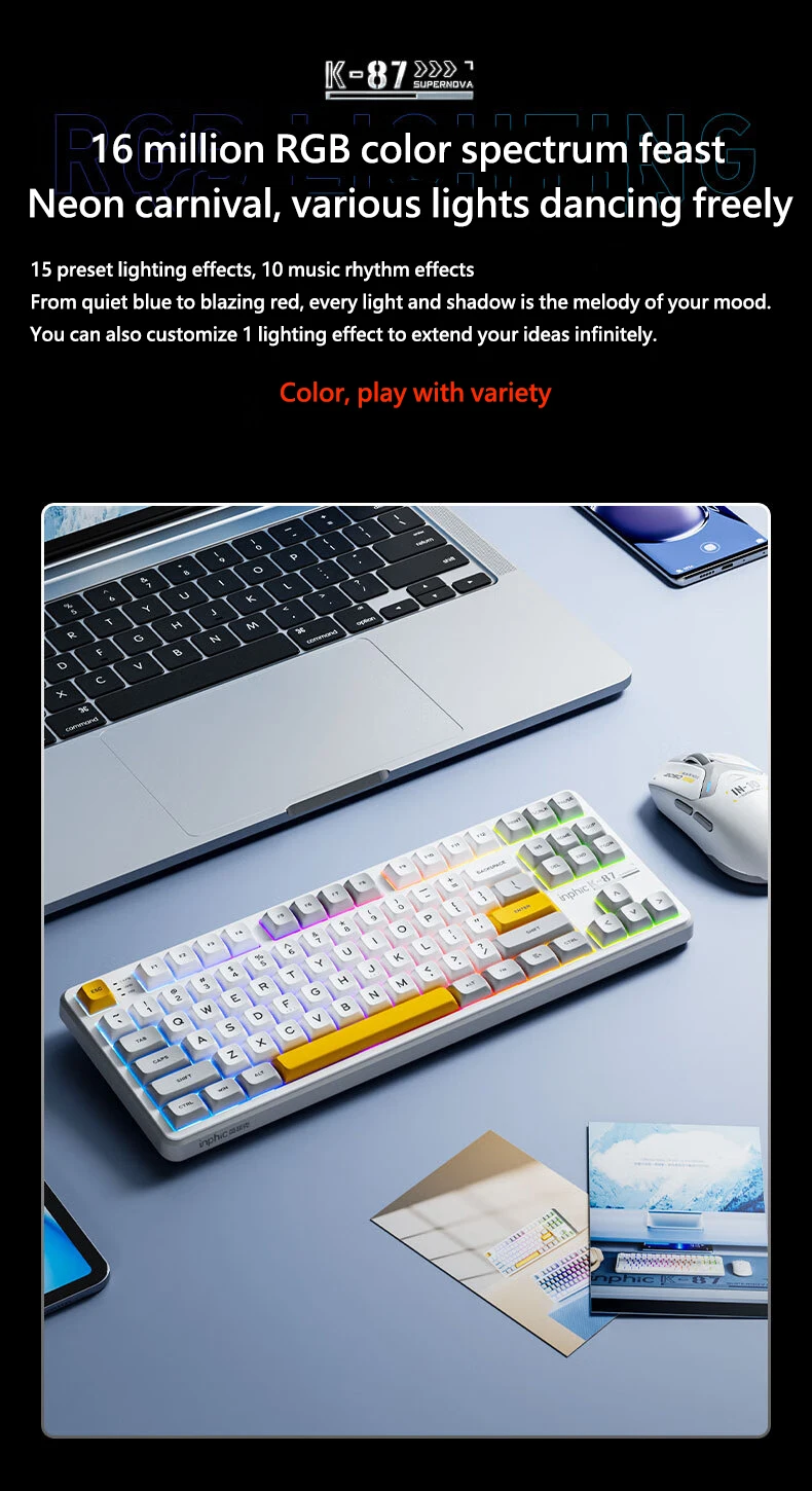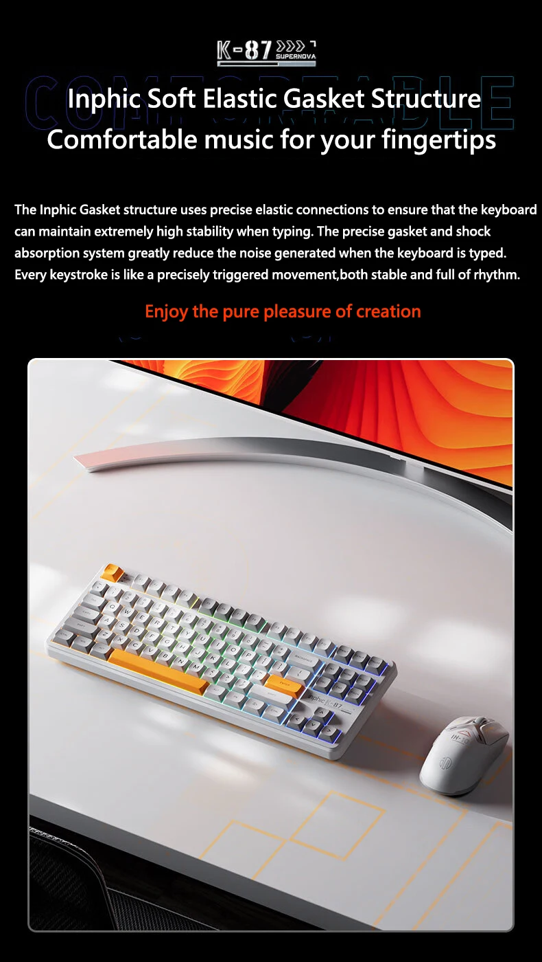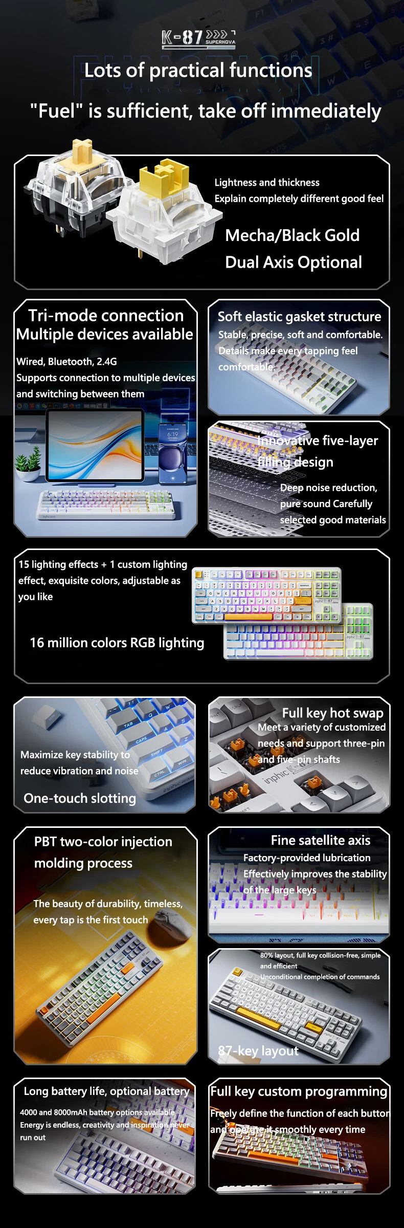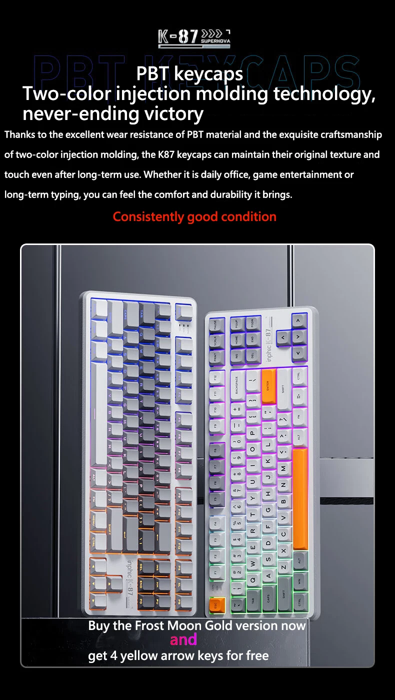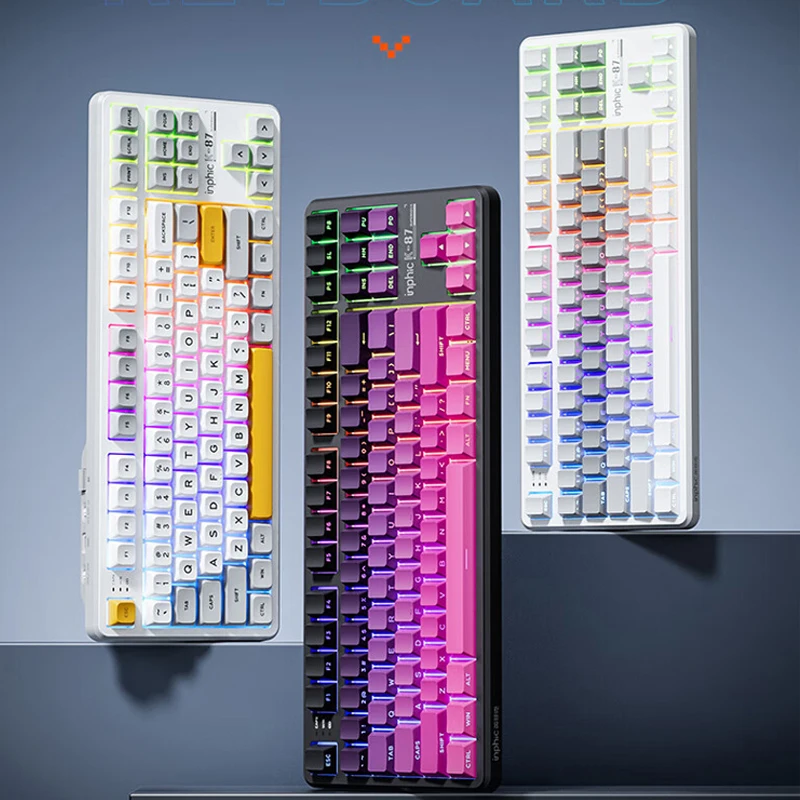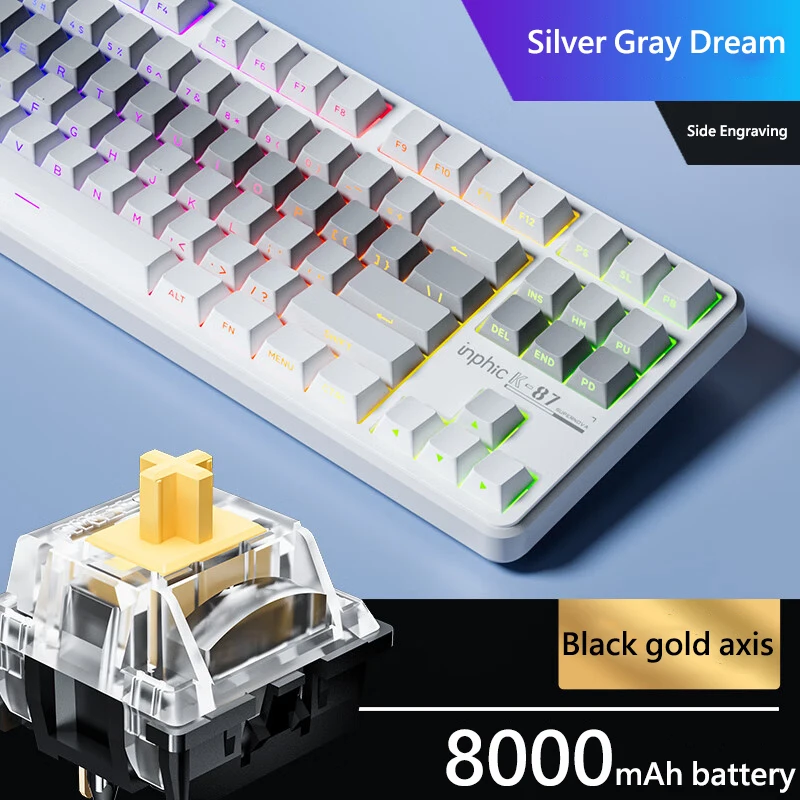 Comprar INPHIC K87 2,4G teclado mecánico inalámbrico/Bluetooth/con cable para juegos estructura de junta en forma OEM RGB eje negro dorado