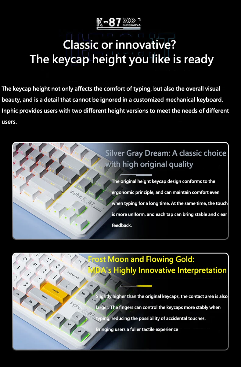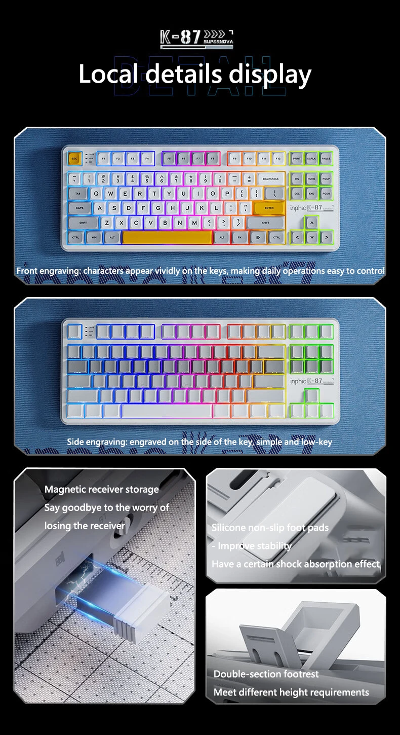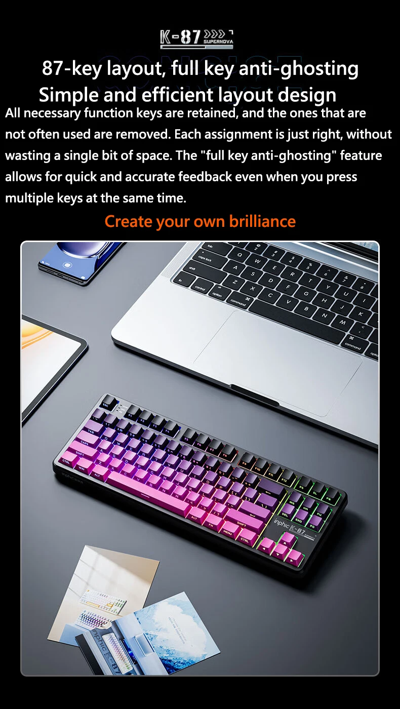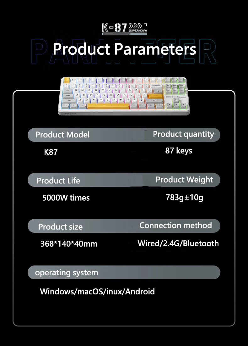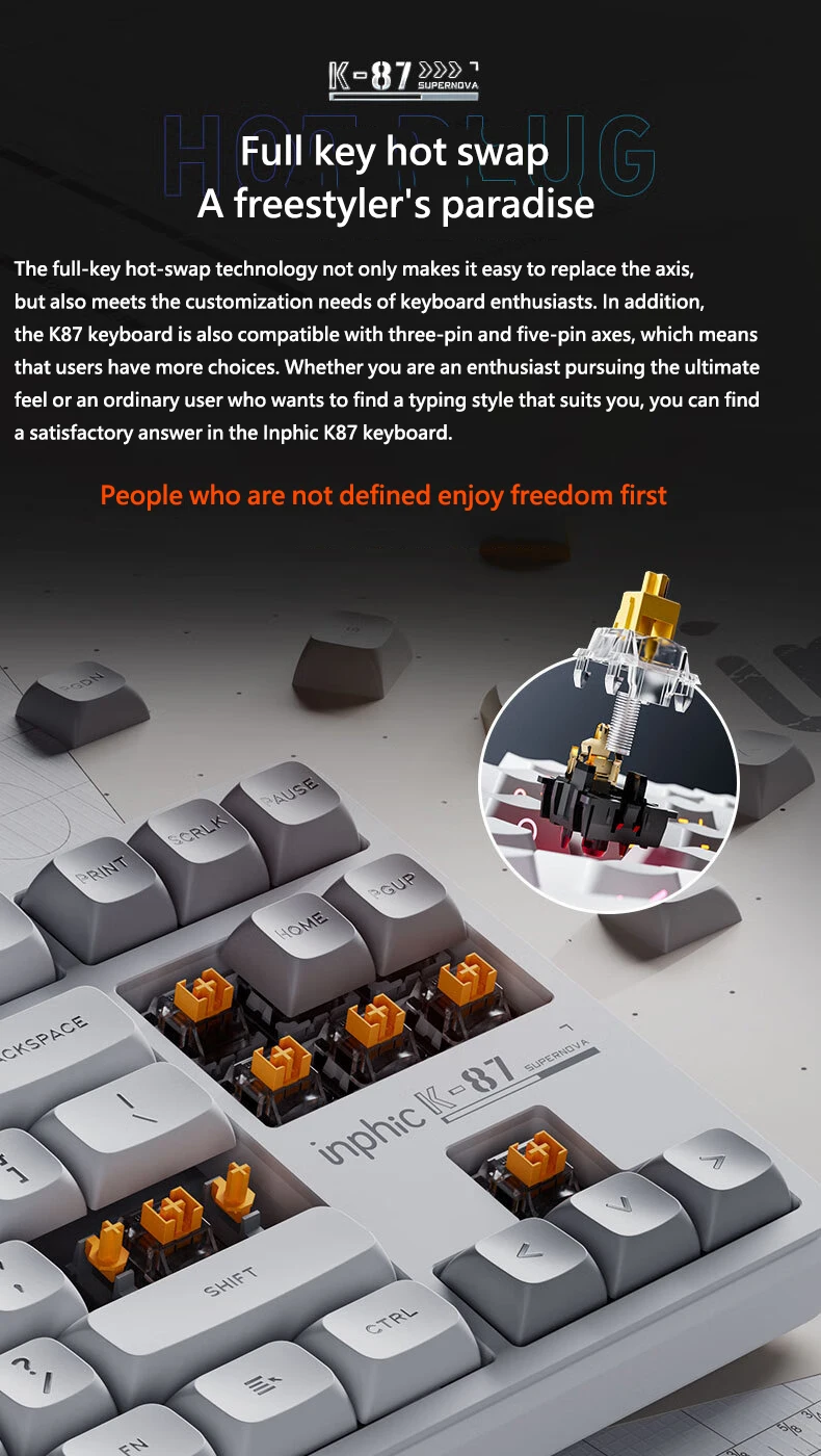Comprar INPHIC K87 2,4G teclado mecánico inalámbrico/Bluetooth/con cable para juegos estructura de junta en forma OEM RGB eje negro dorado