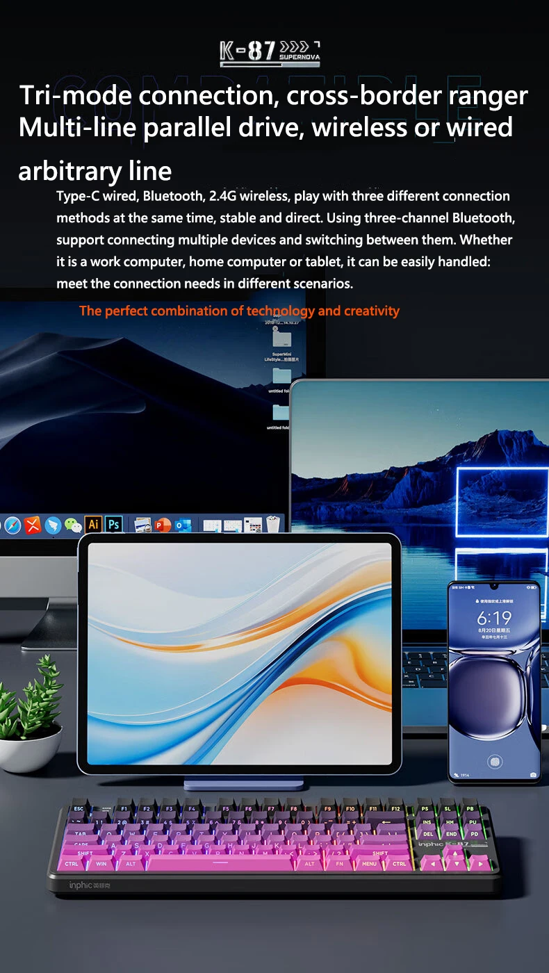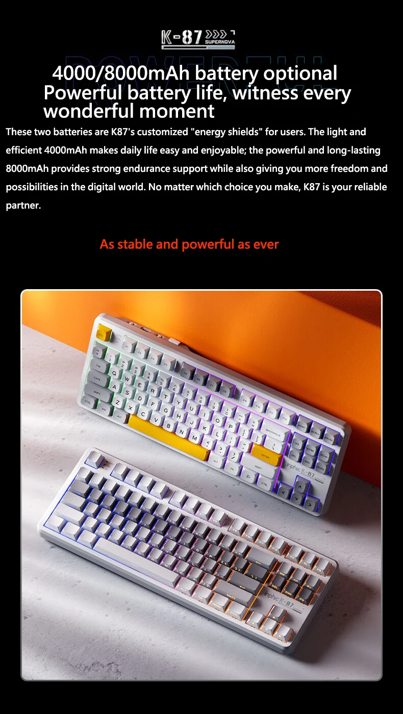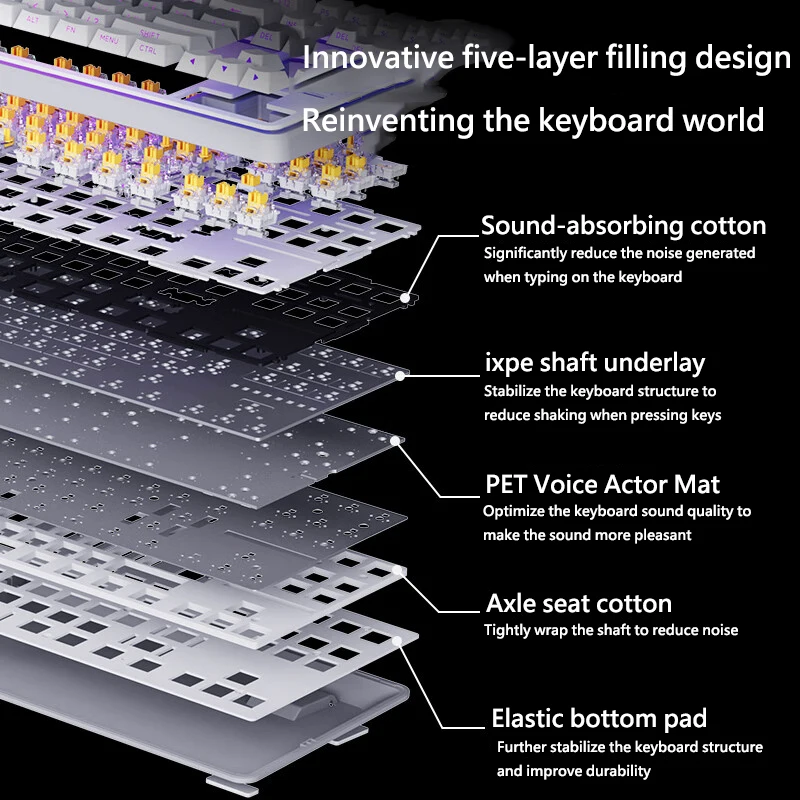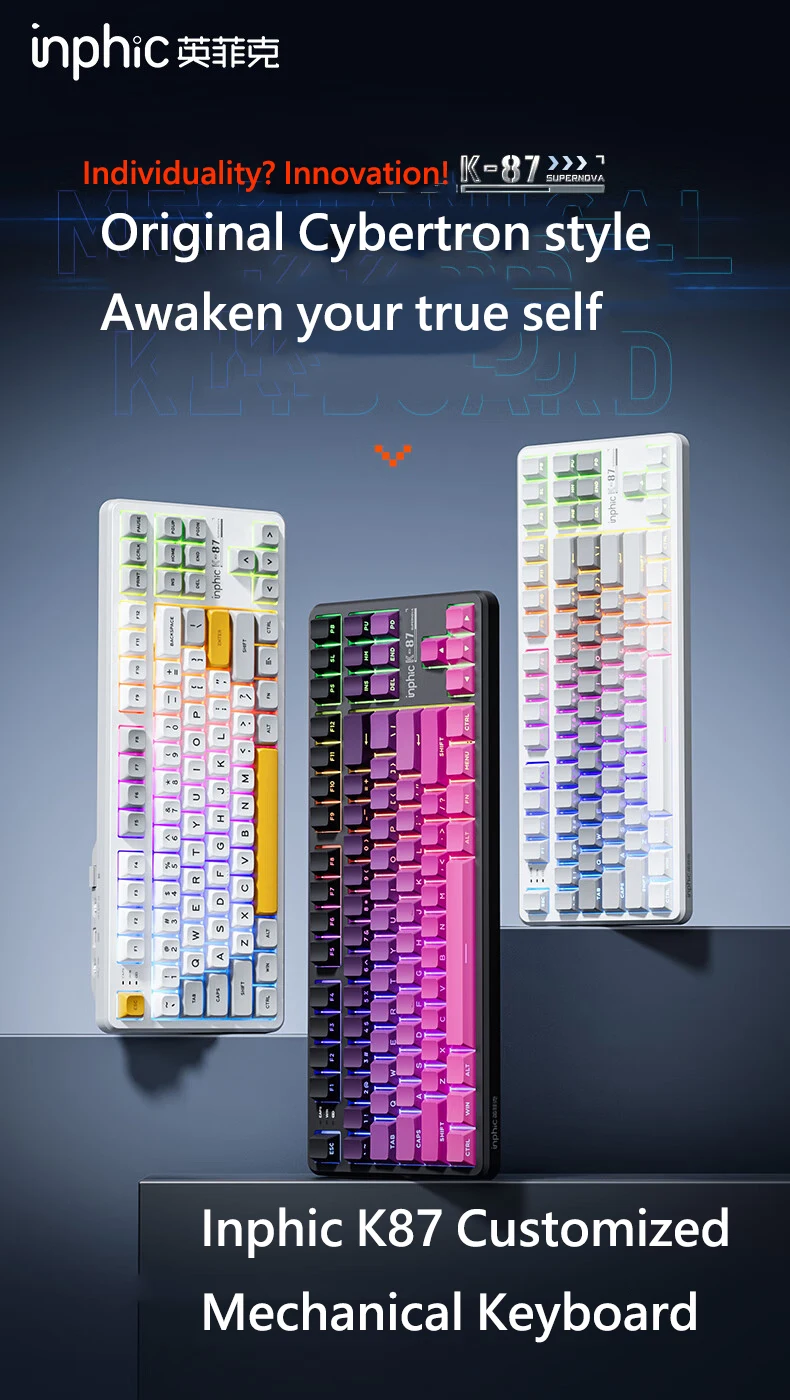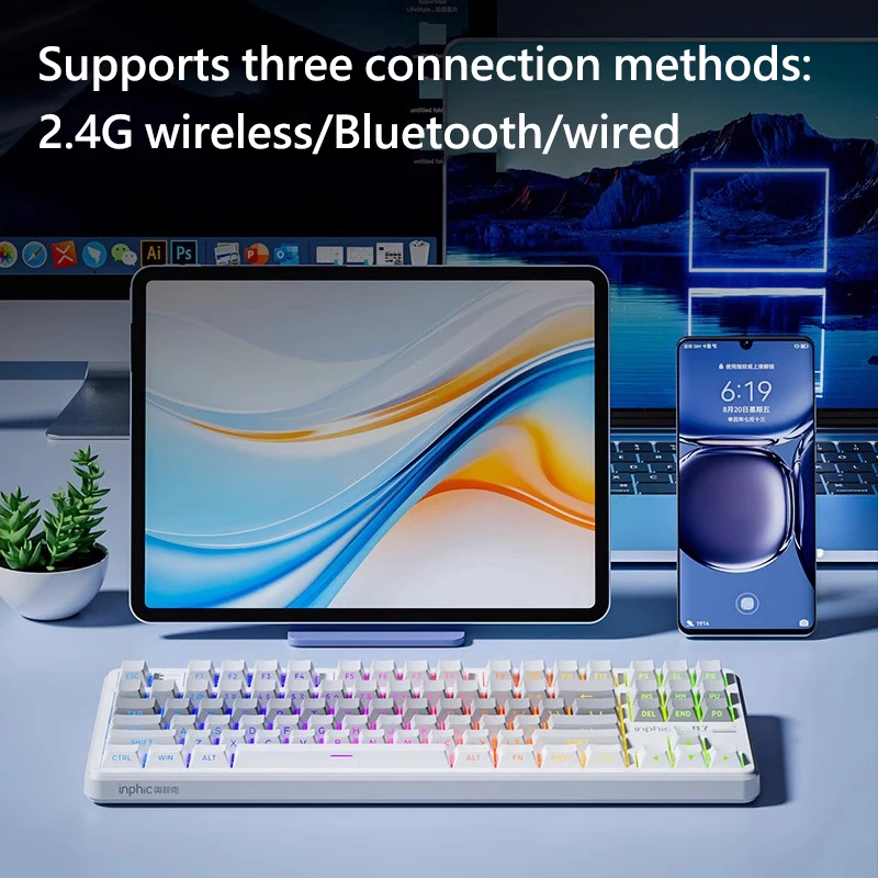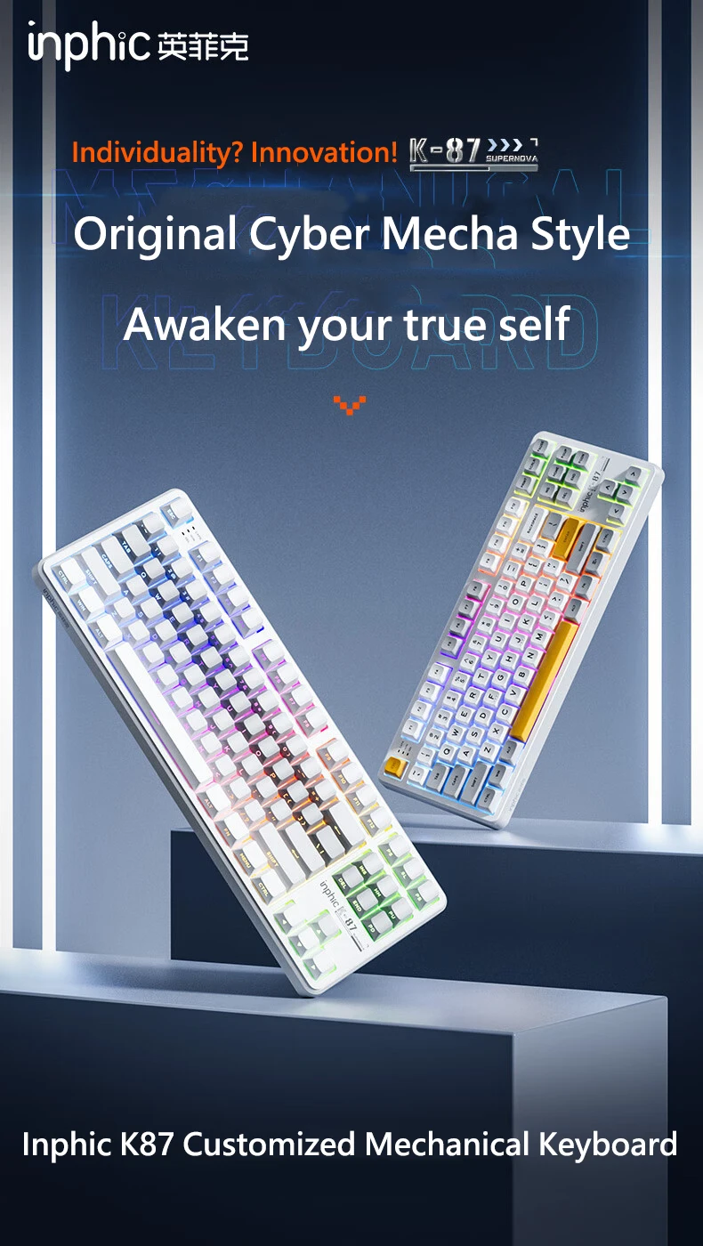 Comprar INPHIC K87 2,4G teclado mecánico inalámbrico/Bluetooth/con cable para juegos estructura de junta en forma OEM RGB eje negro dorado