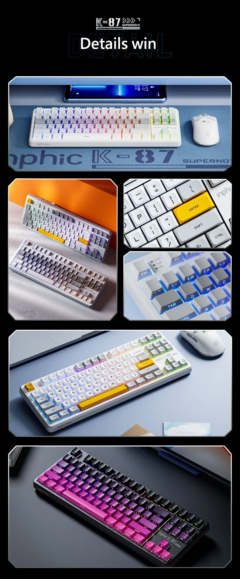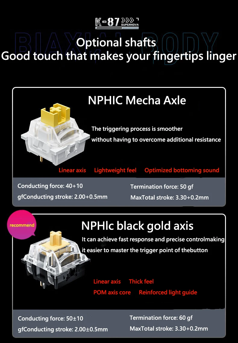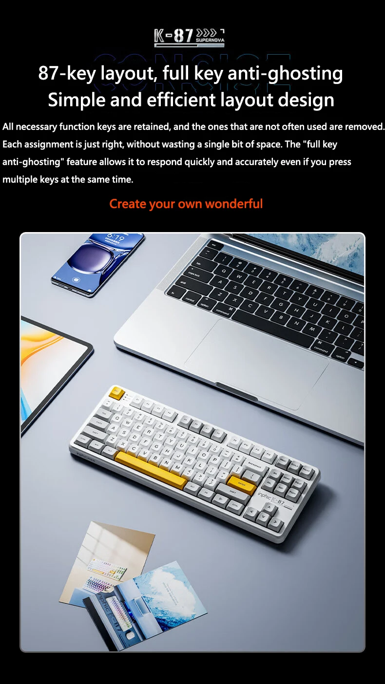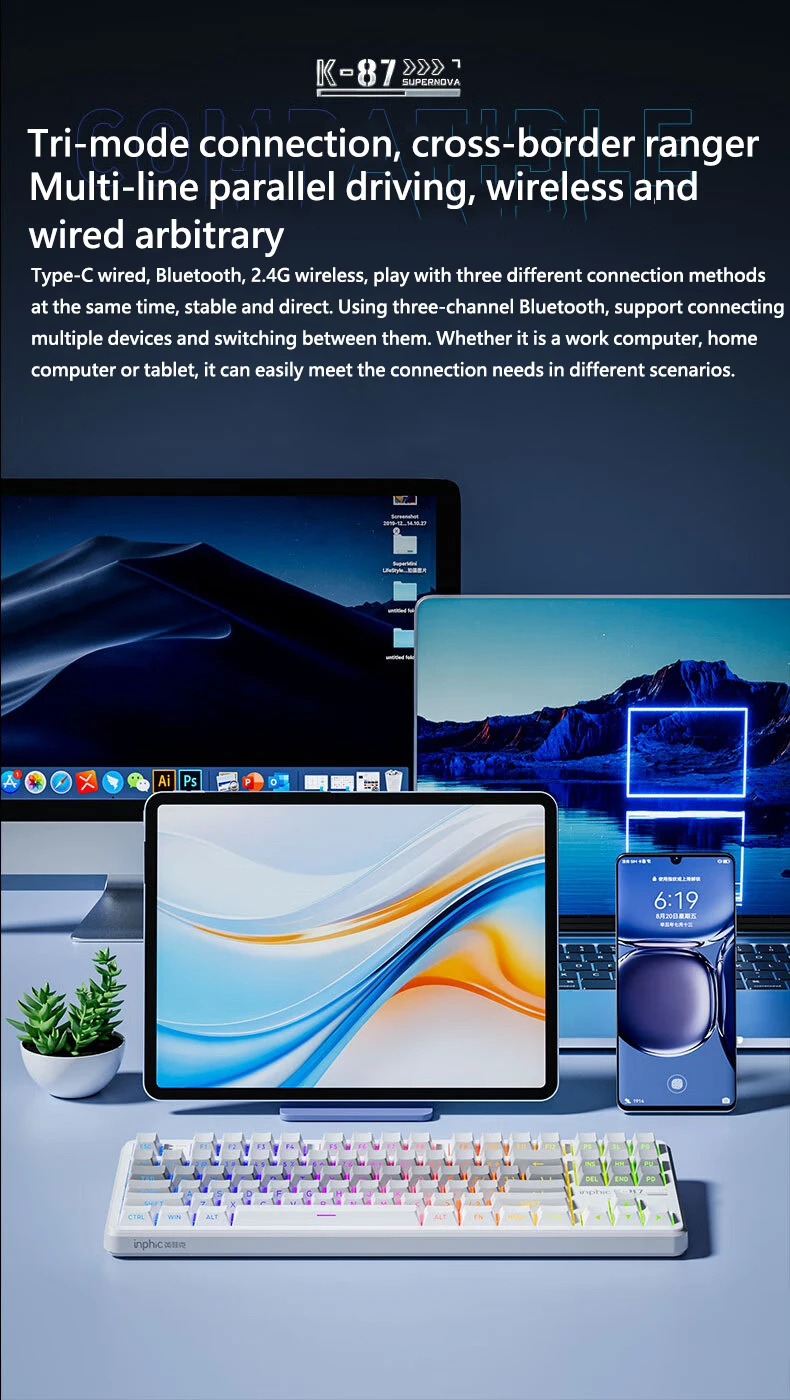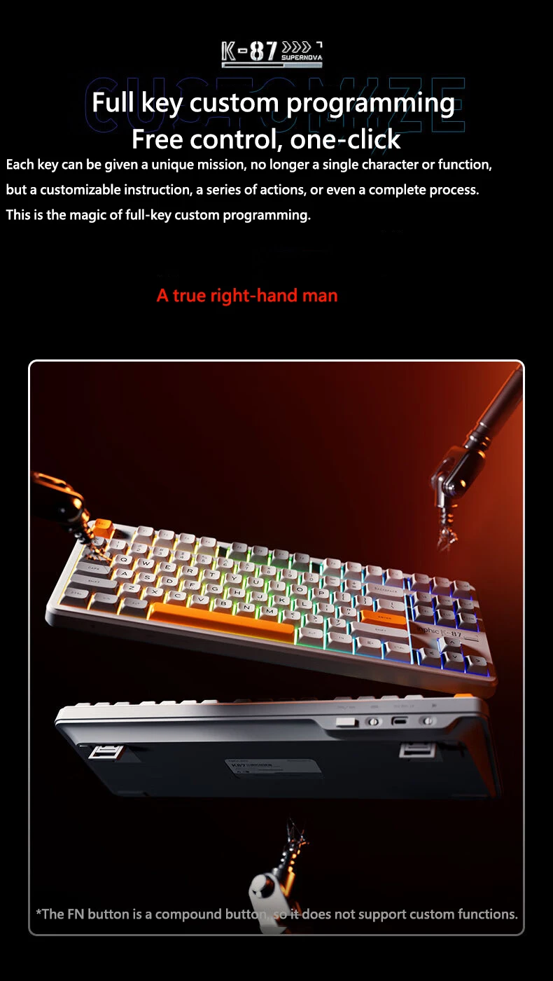 Comprar INPHIC K87 2,4G teclado mecánico inalámbrico/Bluetooth/con cable para juegos estructura de junta en forma OEM RGB eje negro dorado