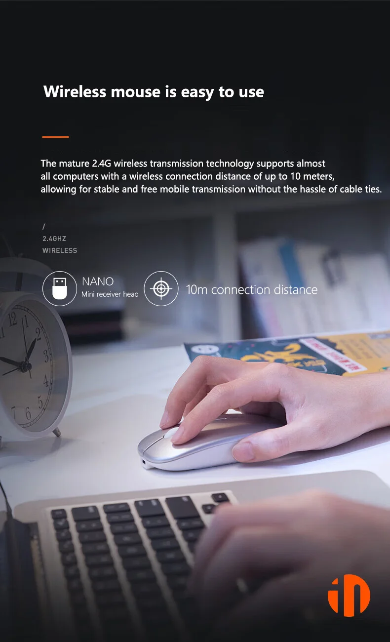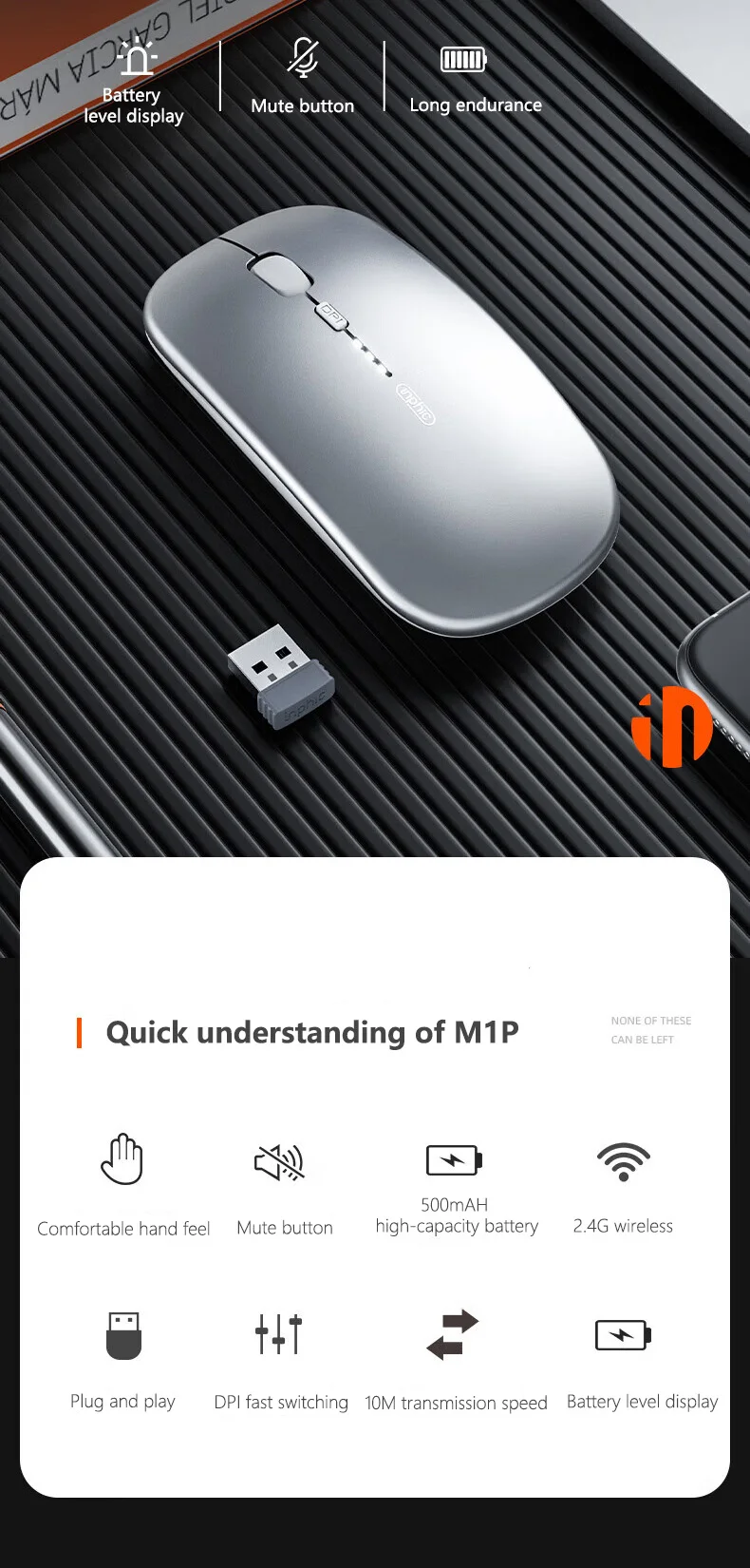 Comprar Inphic-ratón inalámbrico M1P para ordenador portátil, periférico con pantalla de nivel de batería, recargable, 2,4G, silencioso, ultrafino, portátil, PC y tableta