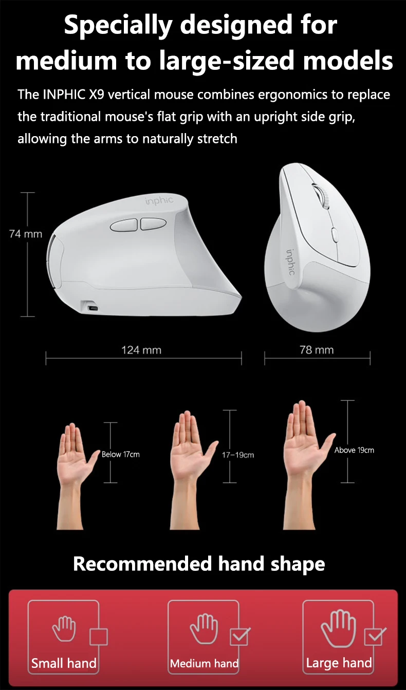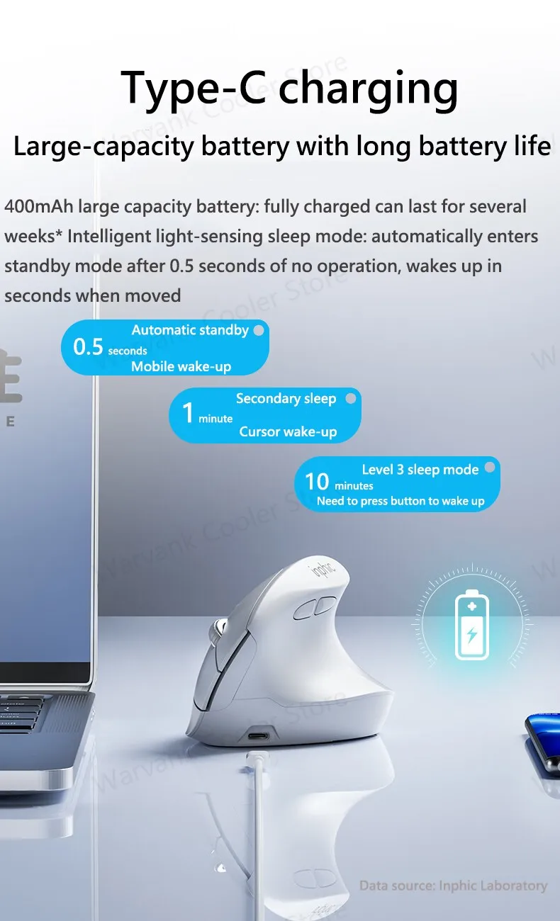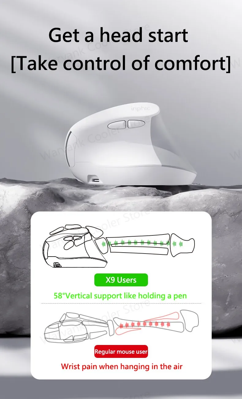 Comprar INPHIC X9 ratón inalámbrico Vertical ergonómico tipo C carga rápida ratón de oficina silencioso para ordenador portátil ordenador de escritorio hogar