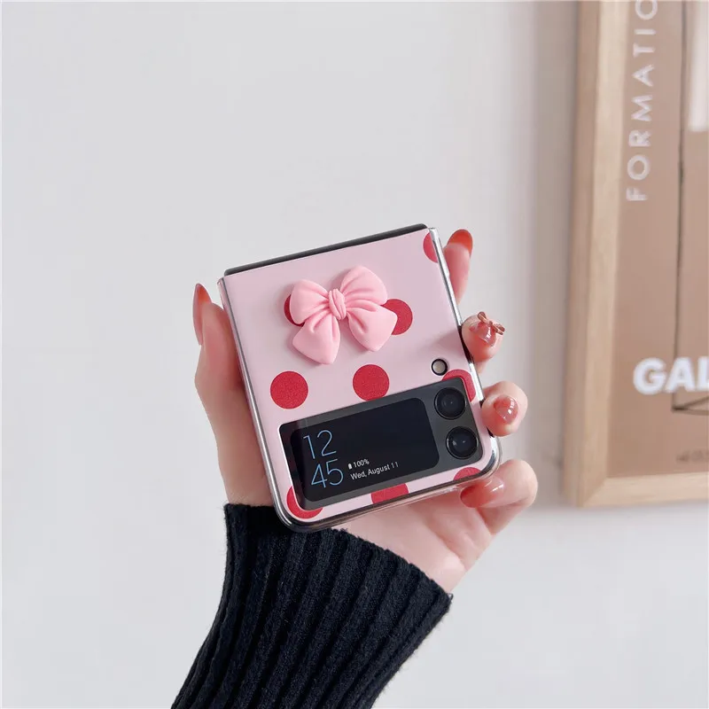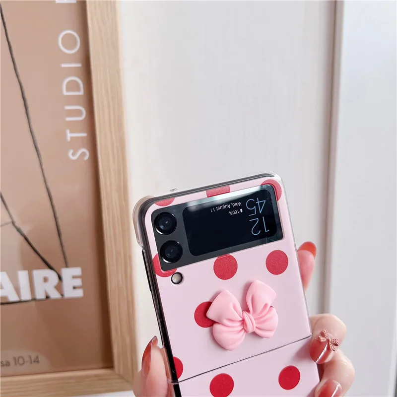 Comprar Ins Red Wave punteado Rosa Bowknot soporte teléfono carcasa para Samsung Galaxy ZFlip3 pantalla plegable