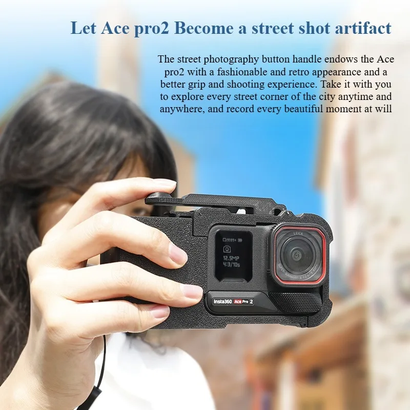 Compatible con liberación rápida, transición perfecta: diseñada específicamente para Insta360 Ace Pro2, su estructura única se adapta perfectamente a soportes de liberación rápida, lo que permite cambios de accesorios sin esfuerzo sin quitar el agarre, ideal para fotografías callejeras de ritmo rápido.