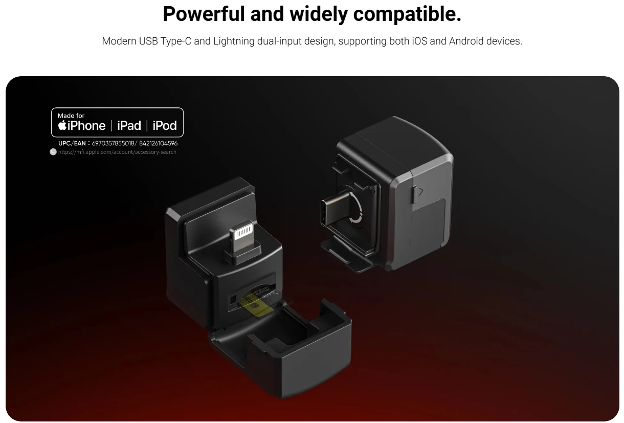 Compatible con dispositivos iOS (certificado Apple MFI) y Android.