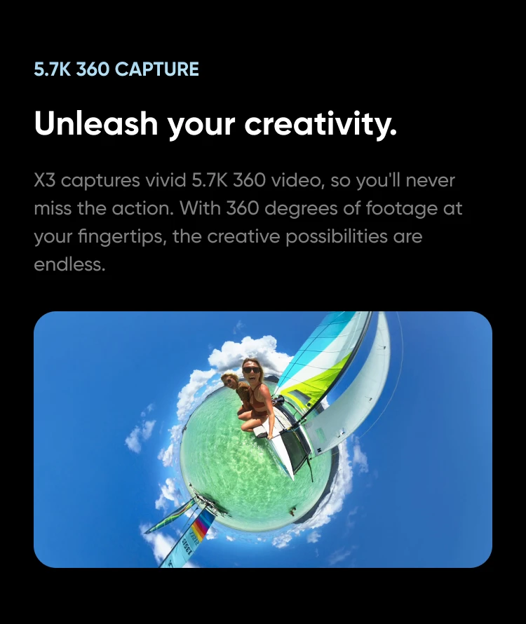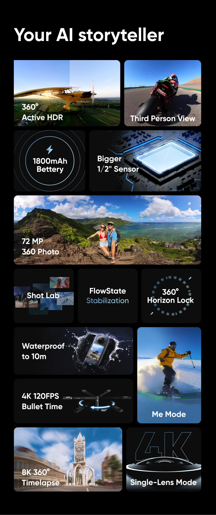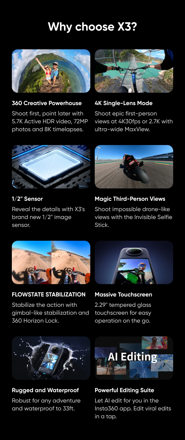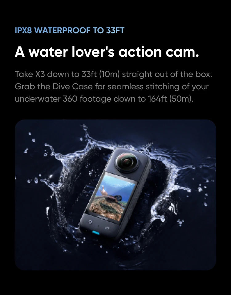 Comprar Insta360-Cámara de acción X3-360, dispositivo con vídeo HDR activo de 5,7 K 360, lente única 4K, estabilización de flujo, pantalla táctil de 2,29"