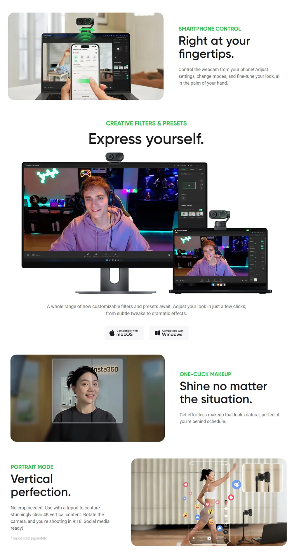Calidad de imagen premium: capture cada detalle con un impresionante sensor de 1/2", imágenes 4K equilibradas y realistas con HDR y un rendimiento excepcional con poca luz para vídeos de calidad con cualquier luz.
