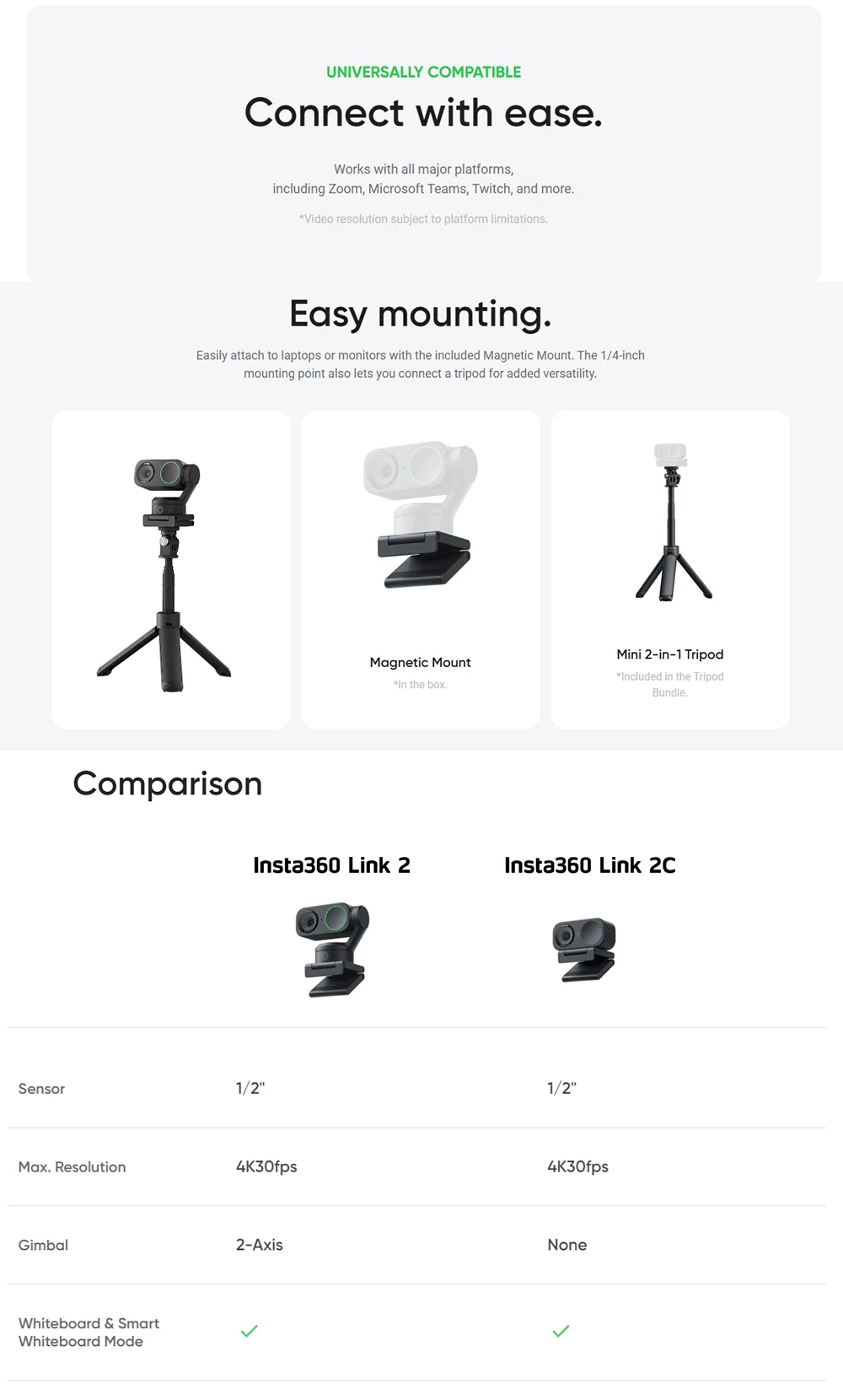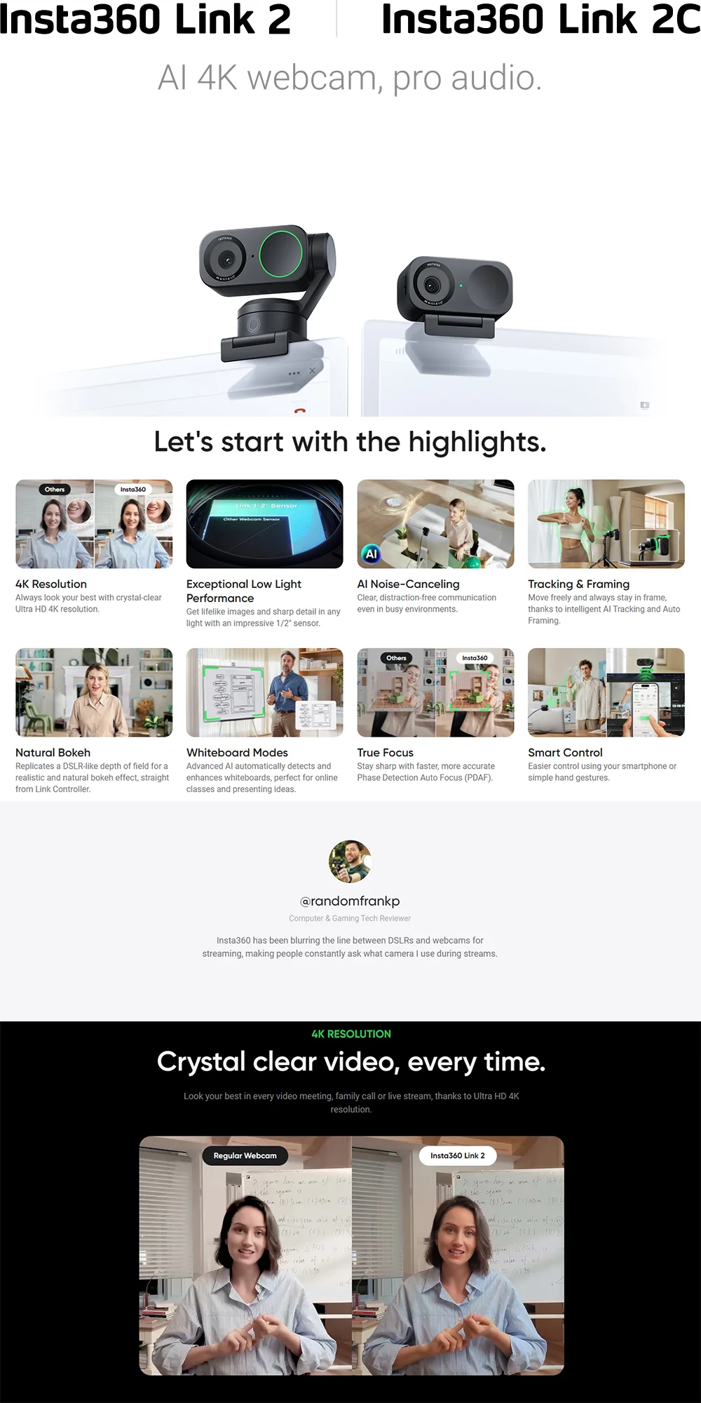 Comprar Insta360 Link 2C - Cámara web 4K para PC/Mac, sensor de 1/2", marco automático, HDR, micrófono con cancelación de ruido AI, funciona con zoom, equipos, interruptor