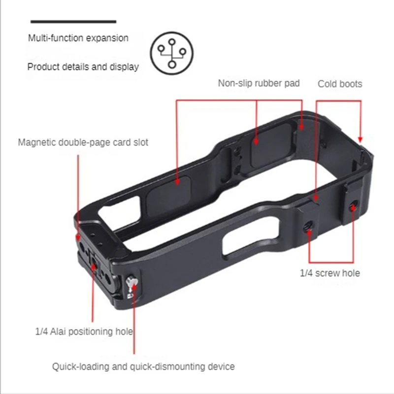 2. Apertura real del molde de la máquina, 1:1 apertura real del molde de la máquina, acabado CNC para crear un botón de cámara que no bloquee la cámara, interruptor de liberación rápida, una pulsación para desbloquear. Una ranura magnética para tarjetas de doble página se coloca en la parte inferior para ampliar los accesorios con tres ranuras para tarjetas.