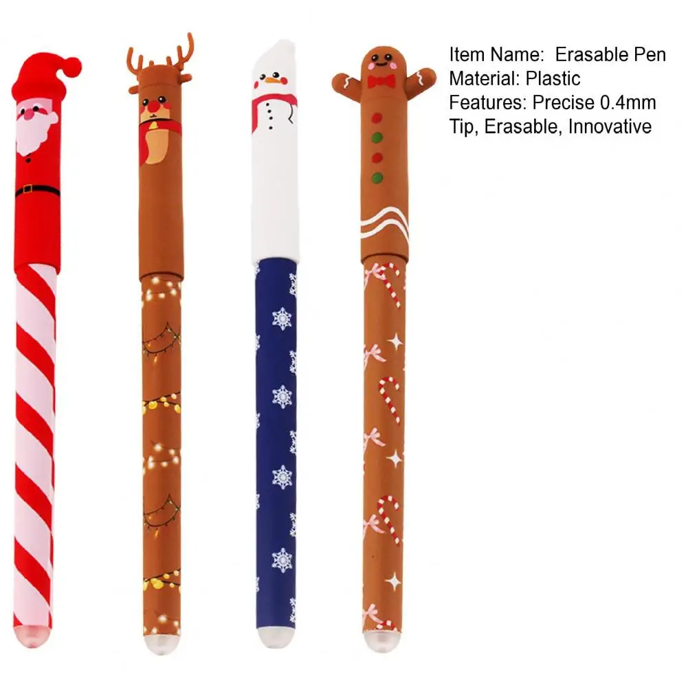 Instrumento de escritura borrable, juego de bolígrafos de Gel borrables para vacaciones festivas para estudiantes, suministros de oficina, bolígrafos de 0,4mm con temática navideña