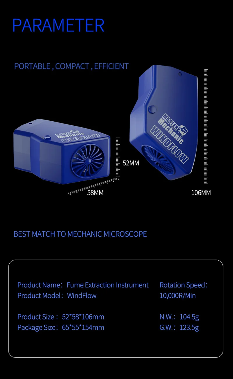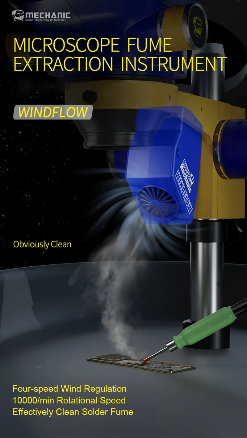 Instrumento de extracción de humos de microscopio de flujo de viento mecánico con regulación del viento de 4 velocidades ventilador de extracción de humos de soldadura de alta frecuencia
