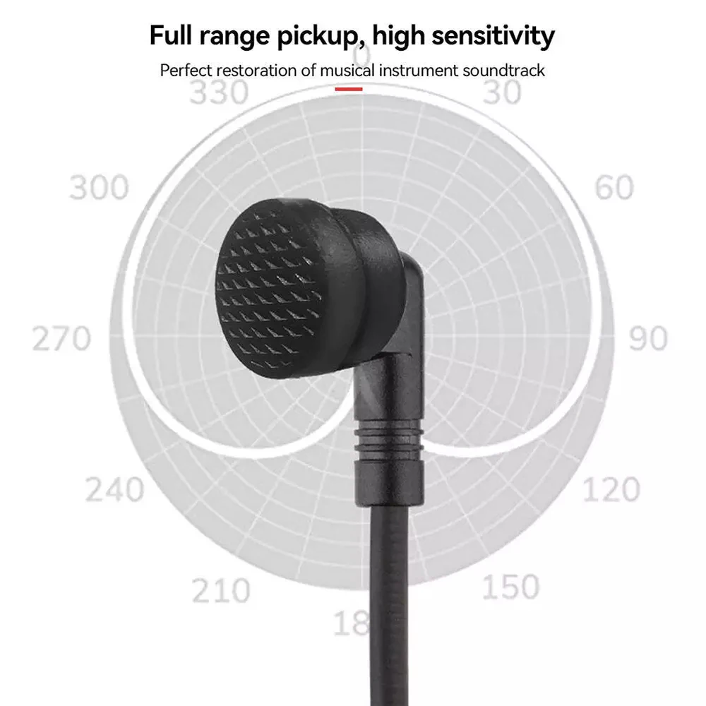 ▶ El micrófono omnidireccional de 360 grados con clip que absorbe los golpes se puede fijar fácilmente en instrumentos o collares.Puede filtrar eficazmente el ruido generado por la vibración del instrumento.