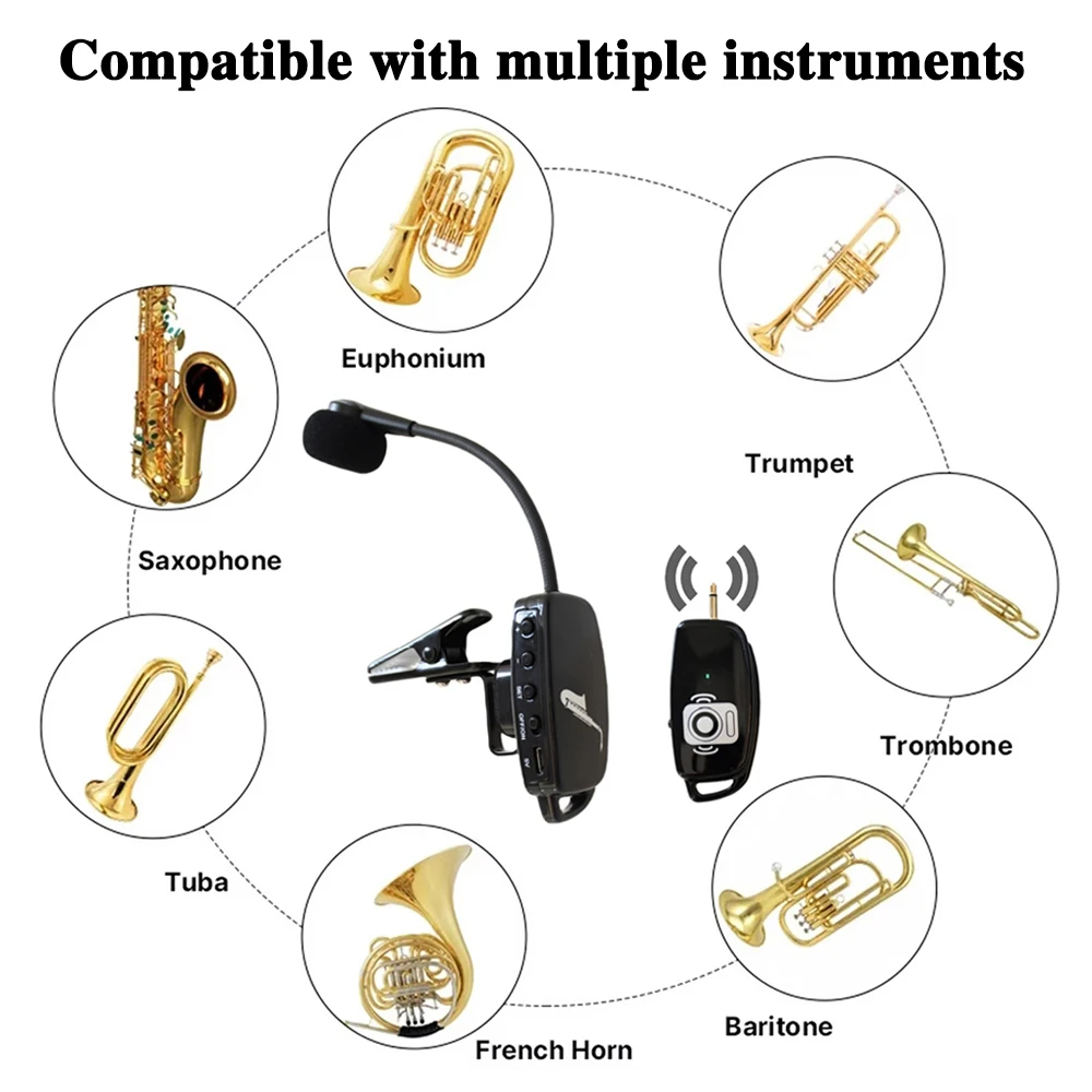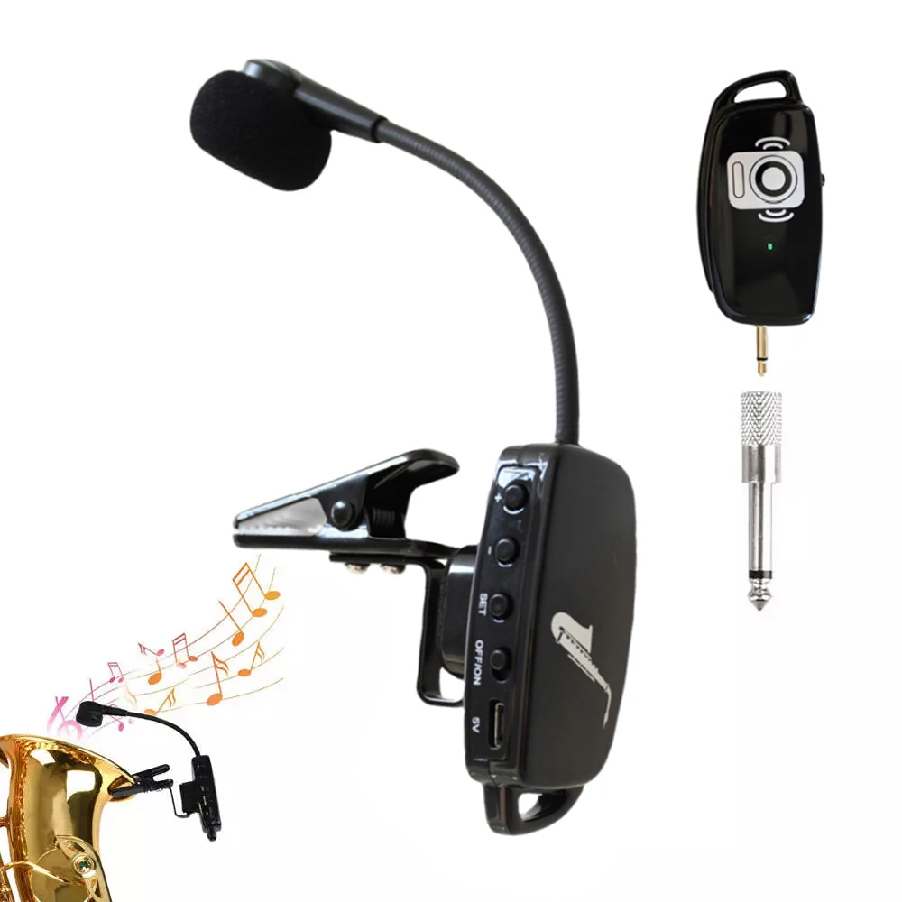 Comprar Instrumentos inalámbricos UHF, micrófono de saxofón, receptor inalámbrico, transmisor, micrófono, alcance de 165 pies, Plug and Play para trompeta y trombón