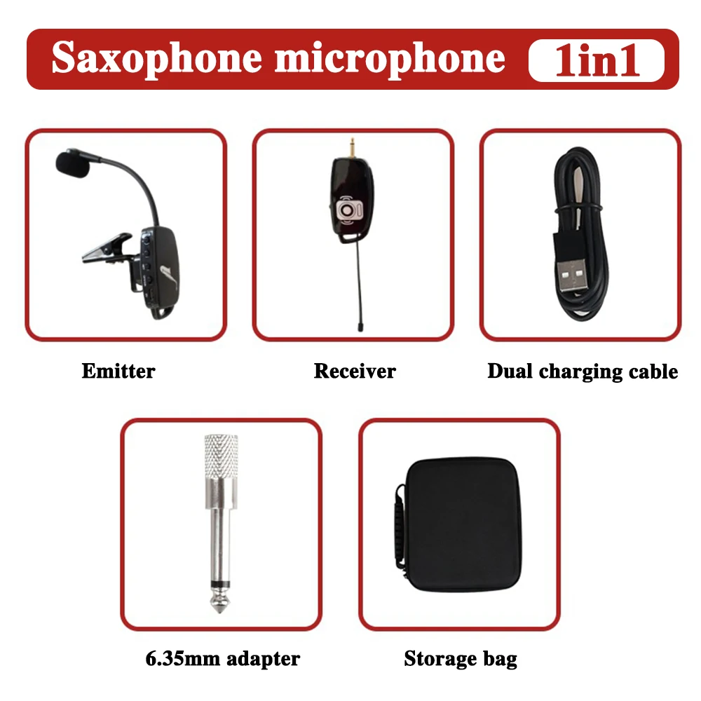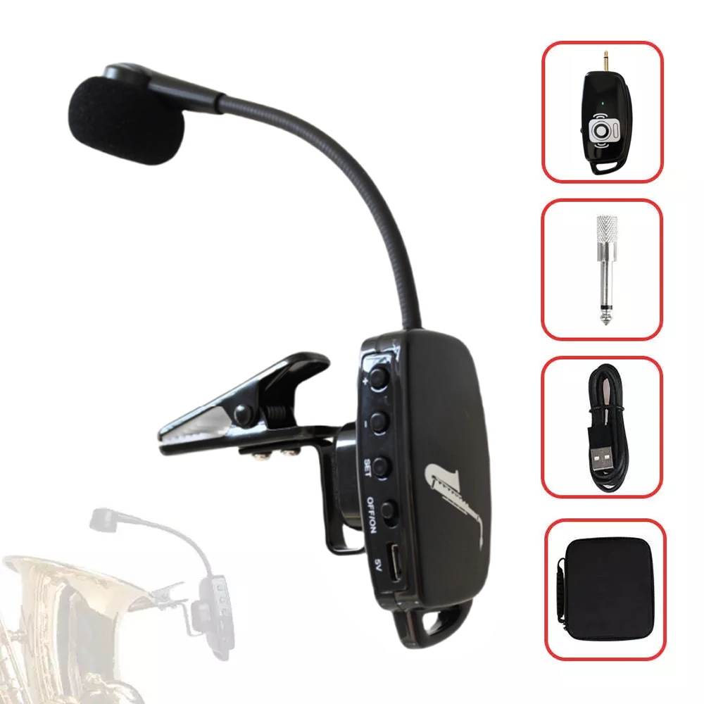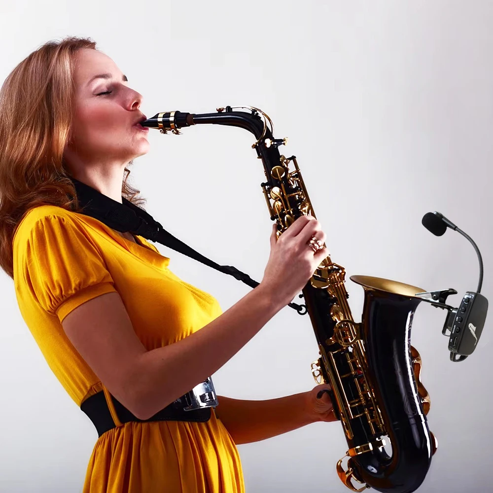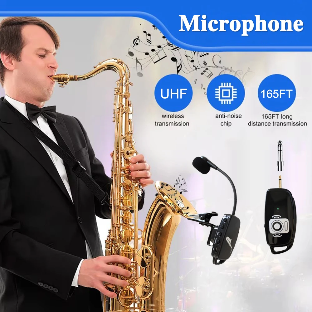 UHF Instruments inalámbricos micrófono de saxofón receptor inalámbrico transmisor micrófono alcance de 165 pies Plug and Play para trompeta Trombone