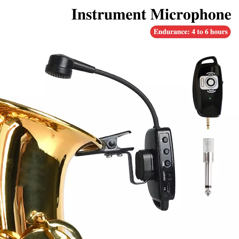 ▶El micrófono inalámbrico ampliamente utilizado es compatible con amplificadores de voz, sistemas de altavoces, etc., adecuado para conciertos, representaciones de bandas, práctica personal, práctica de bandas, micrófono inalámbrico de música eólica, adecuado para diversos instrumentos de latón como trompeta, tuba, bocina, trombón, etc.