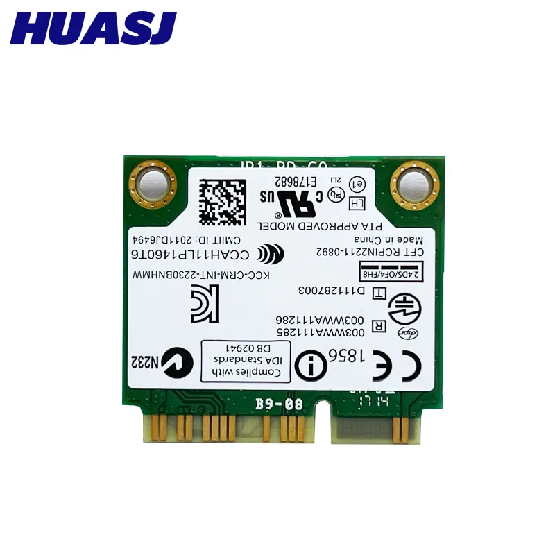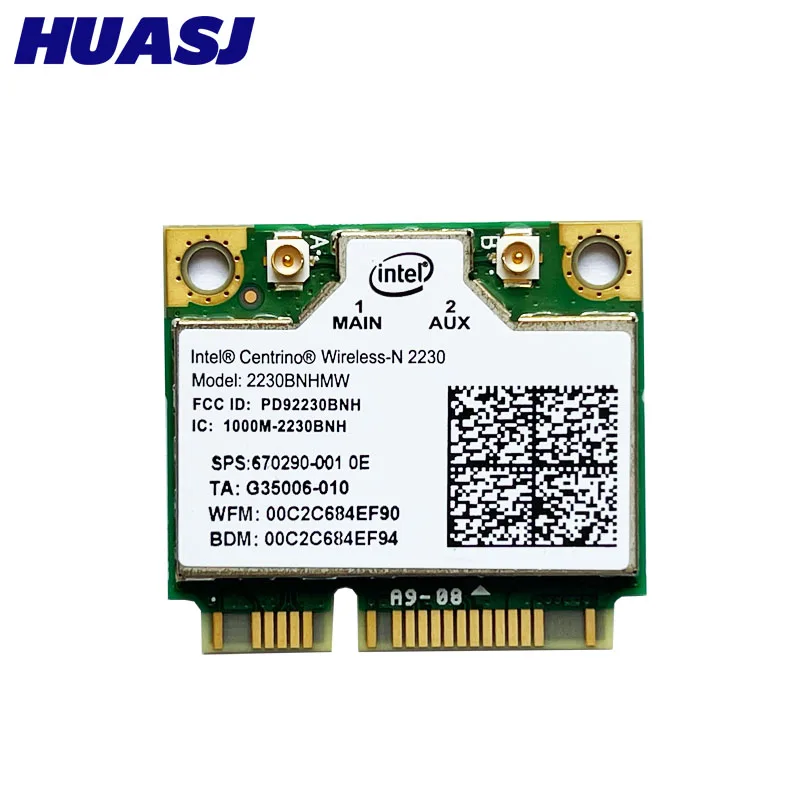 Descripción: Marca: Intel Modelo: 2230BNHMW Velocidad de hasta 300Mbps Soporte 802.11b/G/n Con Bluetooth 4,0 Estado: bien probado, buen estado. Características: Número de pieza: wireless-n 2230 Velocidad de transmisión: 300Mbps Protocolo inalámbrico (s): 802.11b, 802,11g, 802.11n, Bluetooth v4.0 Producto inalámbrico + tarjeta combinada Bluetooth, inalámbrico + tarjeta combinada BlueTooth No es compatible con portátiles IBM/HP Compatible con: Dell/Sony/ACER/ISUS/MSI/Clevo/Terransforce/haseeetclaptopscon ranura PCie Mini (No incluya lenovo y HP, si se puede usar después de reescribir la lista blanca). Nota: ¡El chipest es Intel y la marca es fvi! Paquete: 1 * tarjeta inalámbrica 2 * tornillos