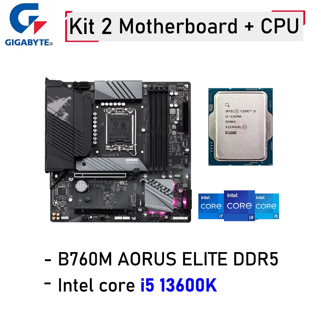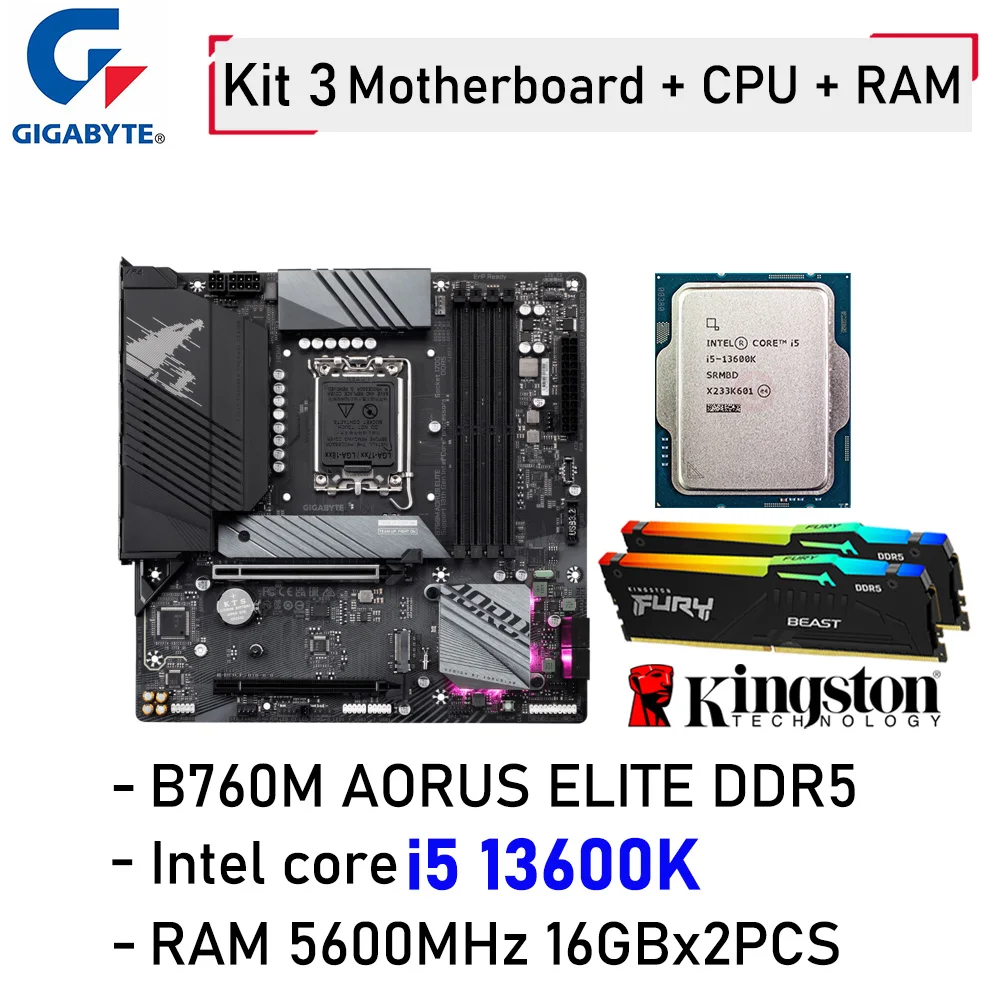 Procesador Intel CoreI5 13600KCombo CPU con LGA 1700 GigabyteB760M AORUS ELITE DDR5Placa base Kingston RAMDDR5 5600MHz 32GBCable RGBKit nuevo