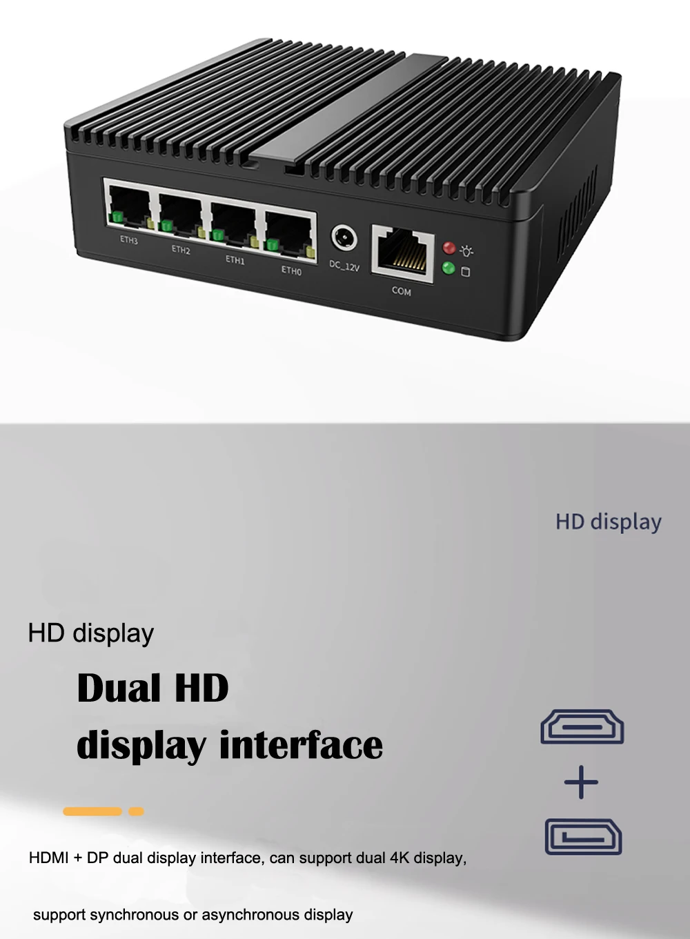 -Admite salida de pantalla dual 1xHD + 1xDP sincrónicamente