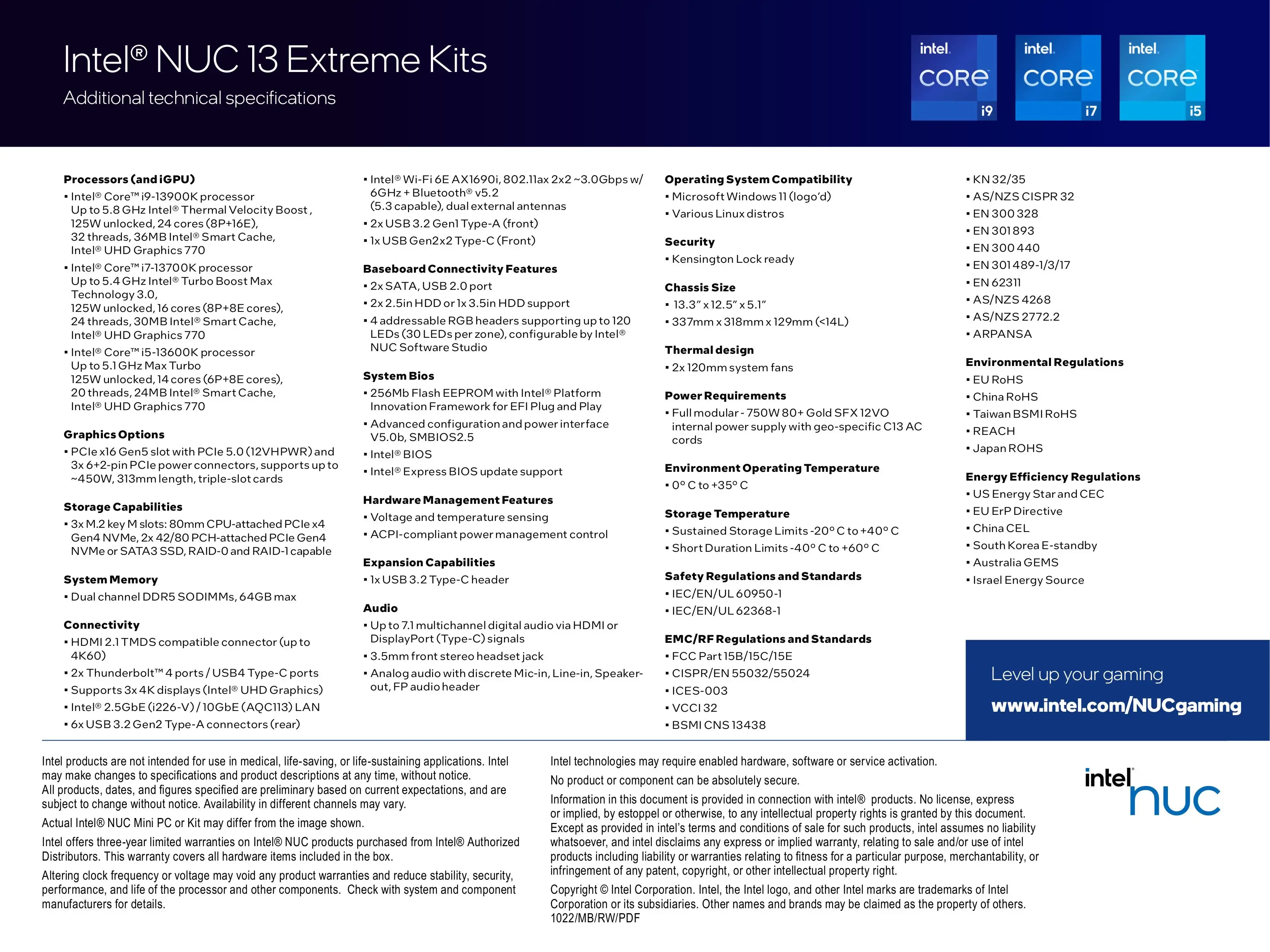 Comprar Intel NUC13 Kit Extremo Intel Core i7-13700K DDR5 Wi-Fi 6 2xThunderbolt 4 | Mini PC compatible con HDMI 2.1 TMDS (4K60)