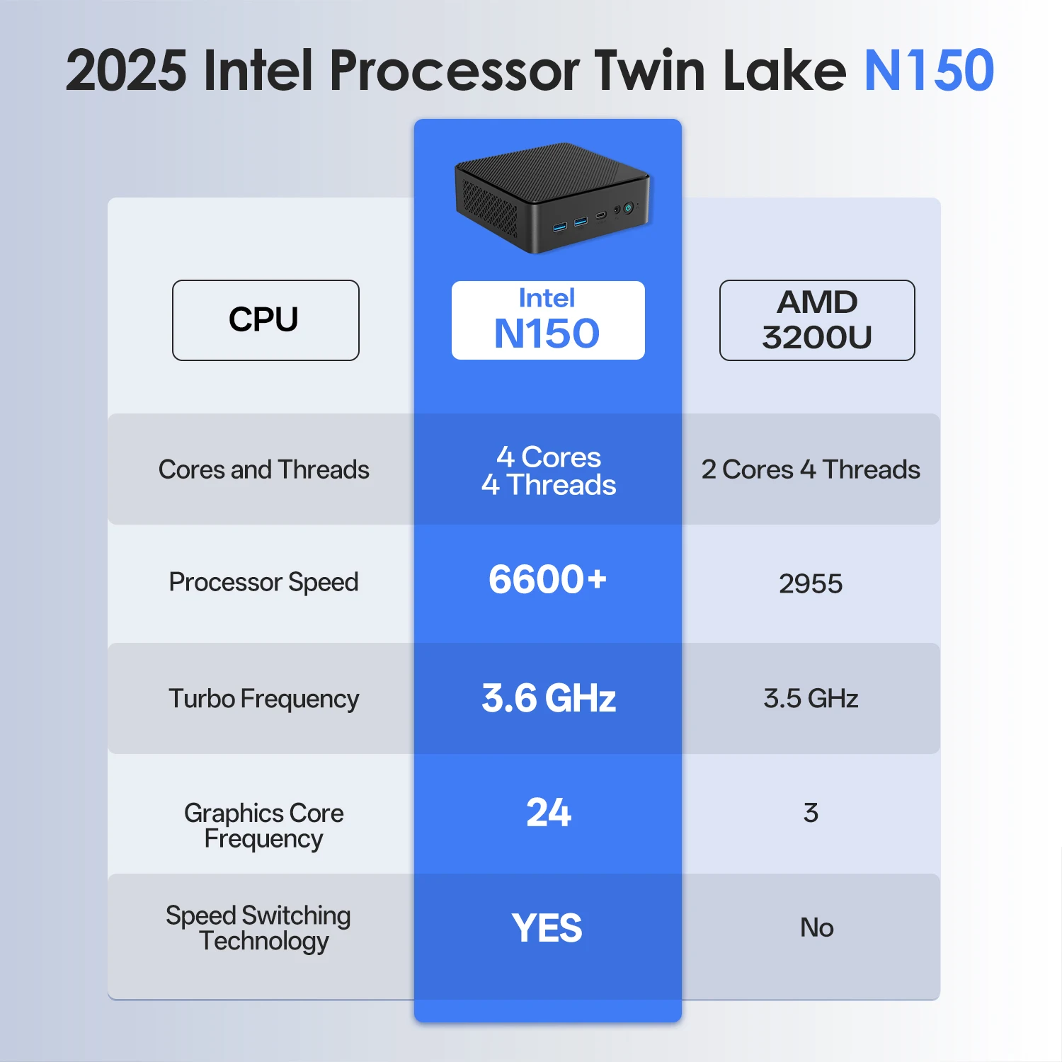 Intel Twin Lake N150 Pokect Mini PC HD DP Windows 11pro Dual LAN/1 * LAN tipo C DDR4 SO-DIMM Msata Micro ordenador Nuc