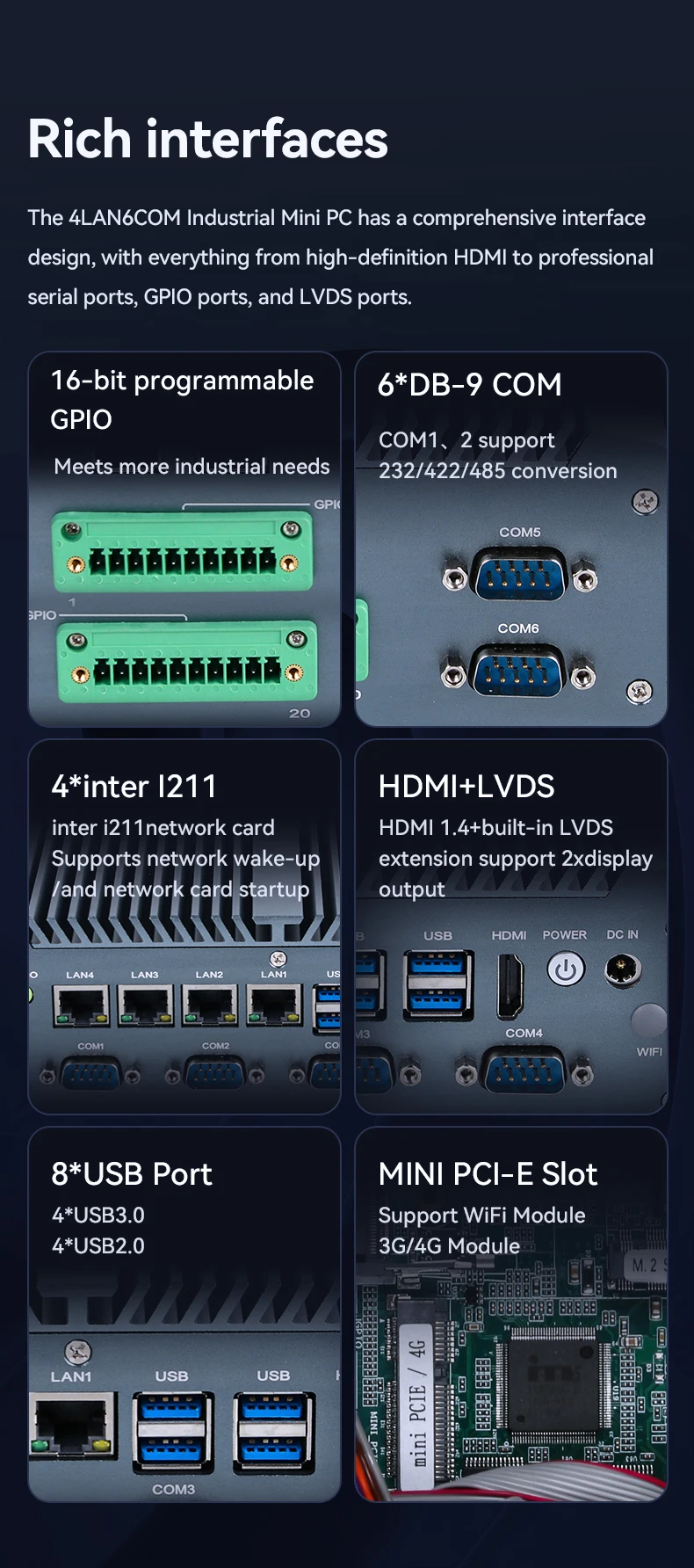 Comprar Inter Core I7-8565U Mini PC industrial compatible con personalización POE WiFi Linux Pfsense GPIO computadora con 4xUSB3.0 4xUSB2.0 1xHDMI