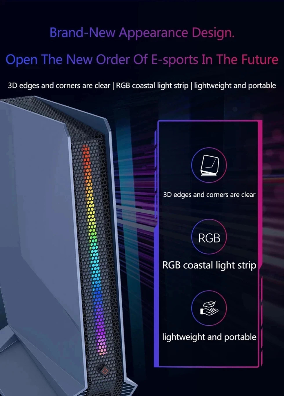 Mainframe, adaptador de corriente, soporte de base, tornillos, cable de datos de disco duro, línea eléctrica