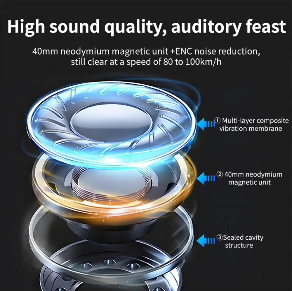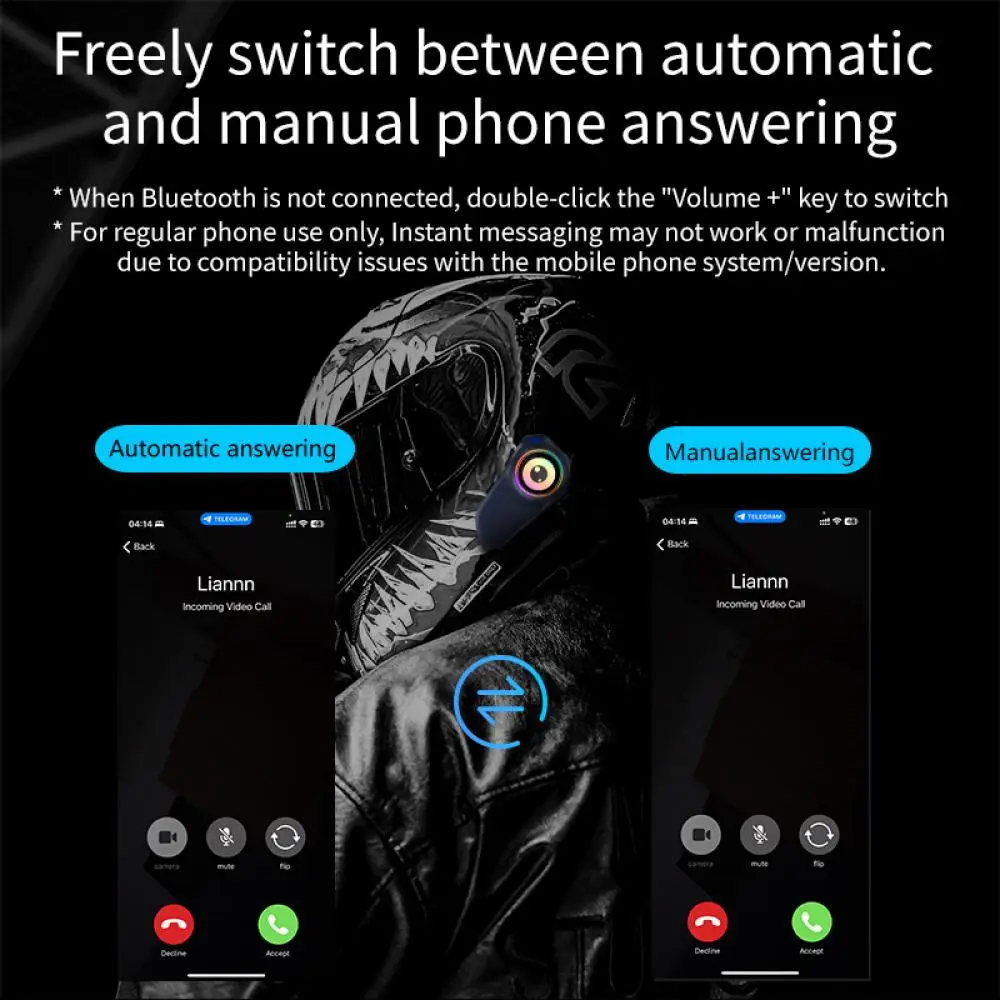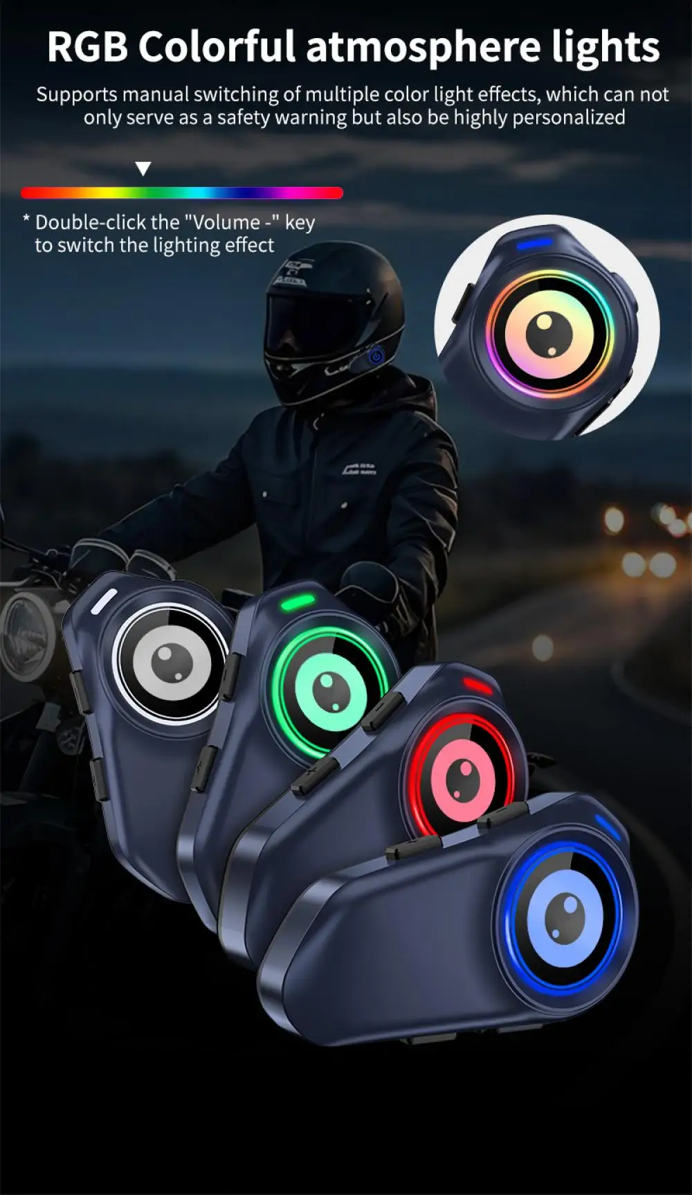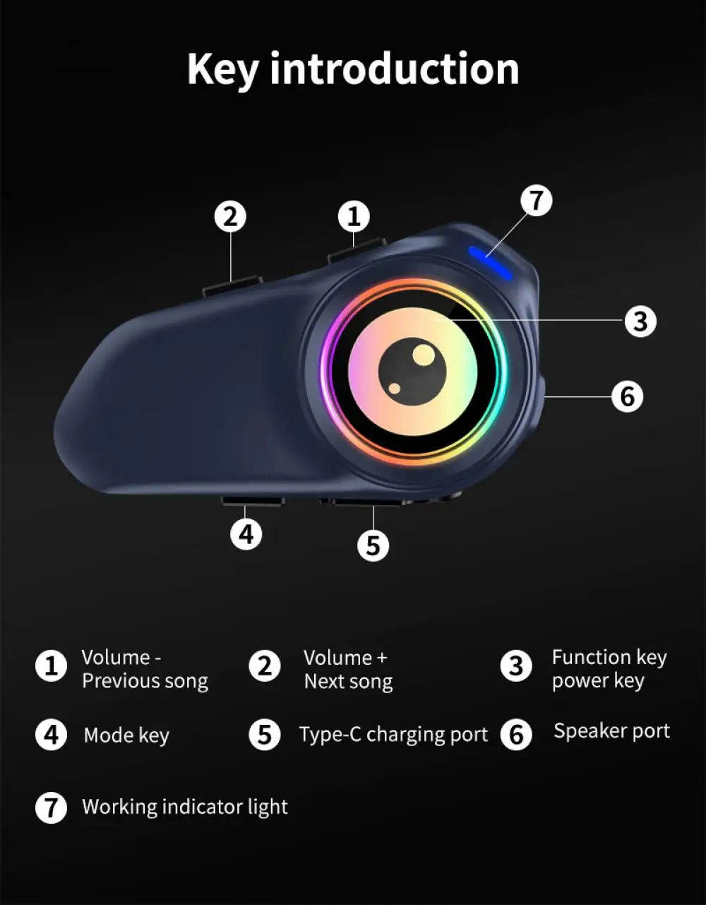 Versión inalámbrica: Bluetooth5.3 Persona de intercomunicación: 2 Distancia del intercomunicador: aproximadamente 500 m como máximo Nivel de impermeabilidad: IPX6 Compartir música: admite 2 personas Tiempo de trabajo de música: aproximadamente 30 horas Tiempo de trabajo del intercomunicador: aproximadamente 25 horas Tiempo de trabajo de llamada: aproximadamente 22 horas Tiempo de carga: 2 horas Capacidad de la batería: 1000 mAh Sistema de sonido: Estéreo