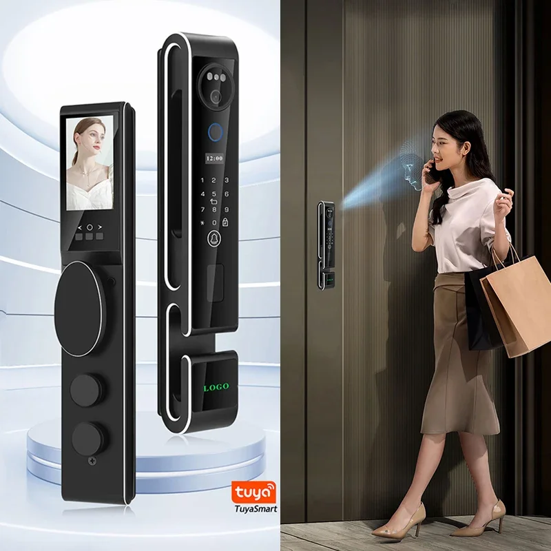 Intercomunicador de vídeo facial 3D S666 de lujo, cerradura automática con huella dactilar, Tuya, cerradura de puerta inteligente con Wifi para apartamento y Villa