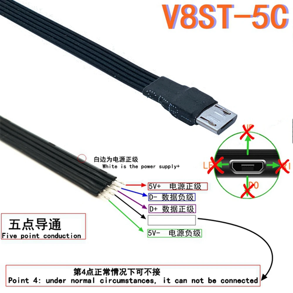 Interfaz Android DIY con cable plano 5P/4P negro 5CM 10CM 20CM 30cm 50cm 100cm 1 pieza DIY mini USB enchufe hembra soldado