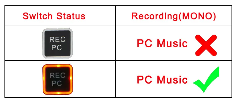 (2) Cuando desee grabar la señal del canal y la música del PC, Active "REC PC". De lo contrario, solo puede grabar la señal del canal.