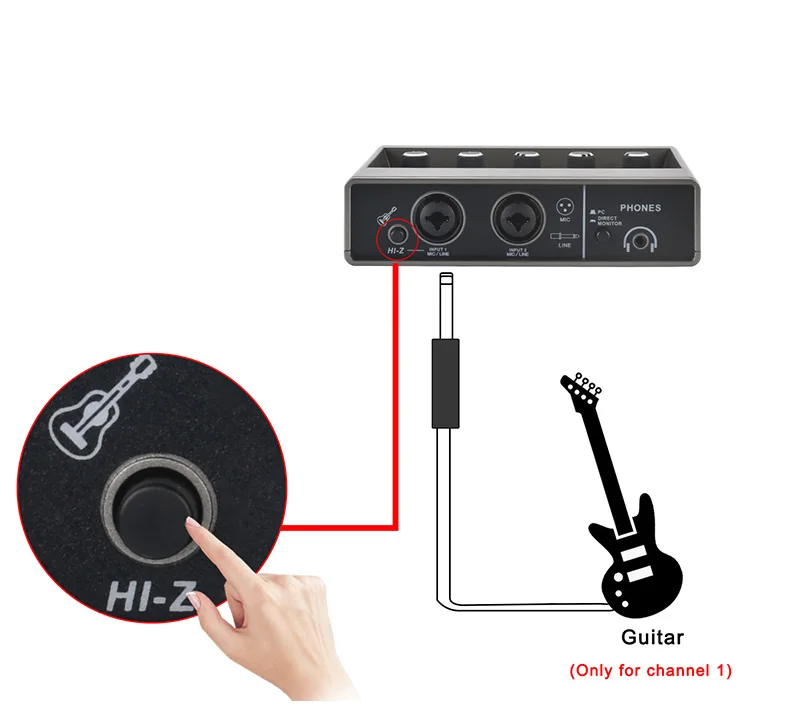 Botón de HI-Z solo para el conector 6,3 del Canal 1.