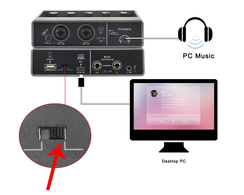 (1) Cuando Conecte el ordenador para reproducir o grabar, cambie a PC y use la interfaz tipo C.