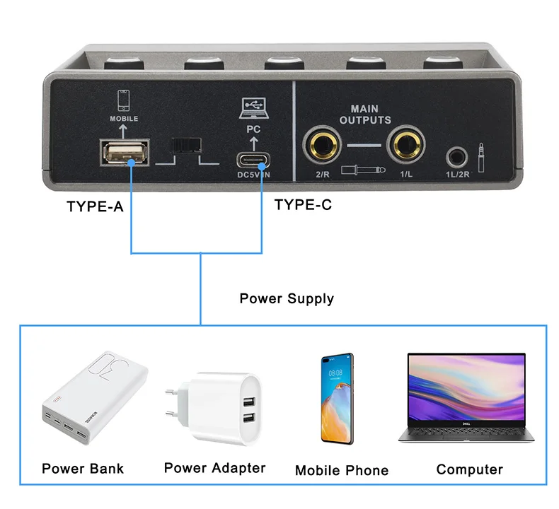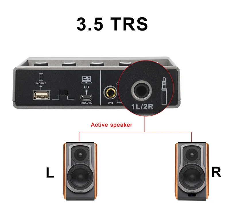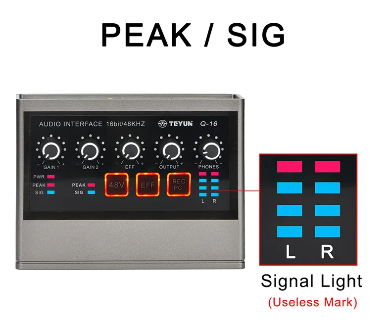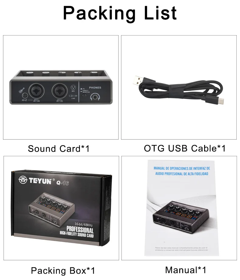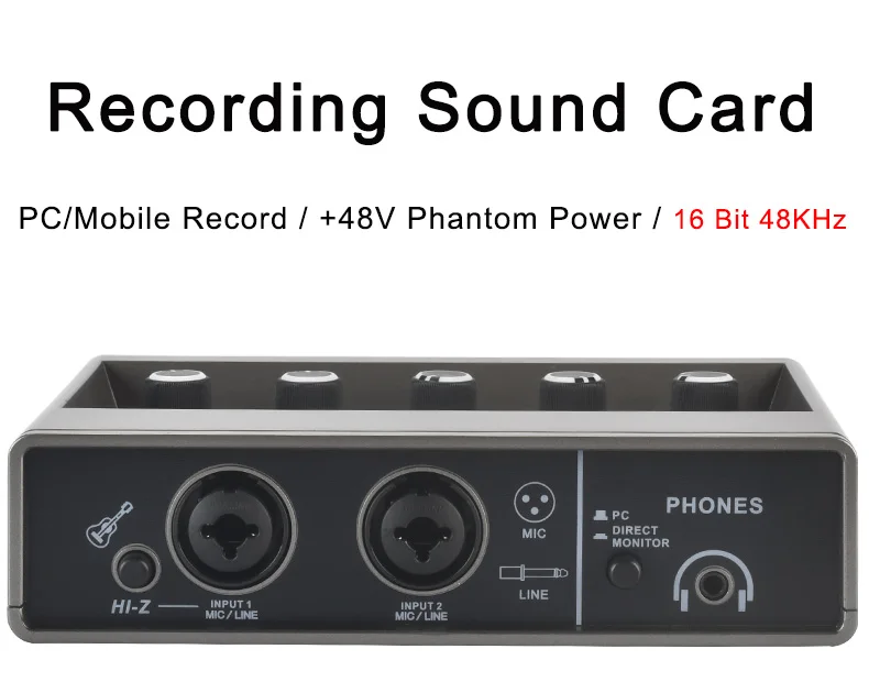 TEYUN-Tarjeta de sonido de estudio externo para grabación de podcast en vivo, dispositivo con interfaz de audio de 48KHz, 2 canales, Echo de guitarra Hi-z de 48V