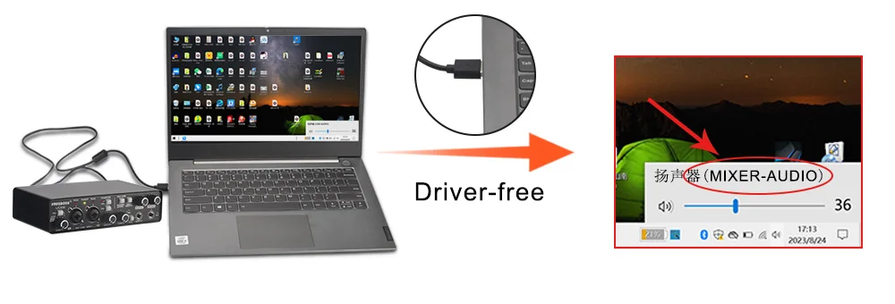 La tarjeta de sonido es un dispositivo sin controlador, puede conectarse a su computadora directamente.Y es compatible con el sistema Windnows y Mac OS.
