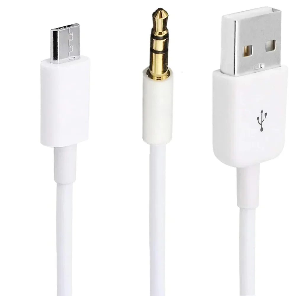 Comprar Interfaz Micro USB Android 2 en 1 a cable de carga de cable de audio de altavoz Bluetooth de 3,5 mm negro/blanco